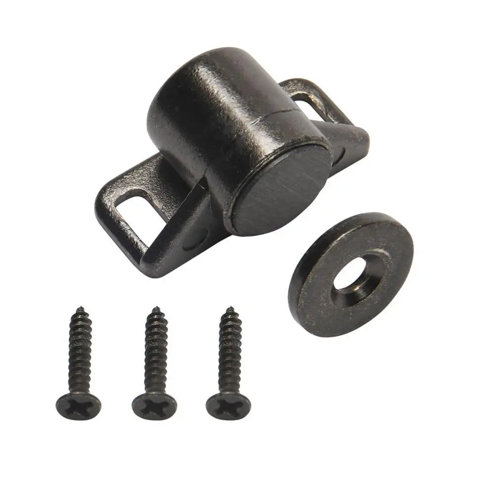 Featuring modern styling, this magnetic catch maintains a sleek appearance even when cabinet doors are open. The versatile gunmetal color complements any cabinet finish. It installs easily with just three screws and provides a secure hold.