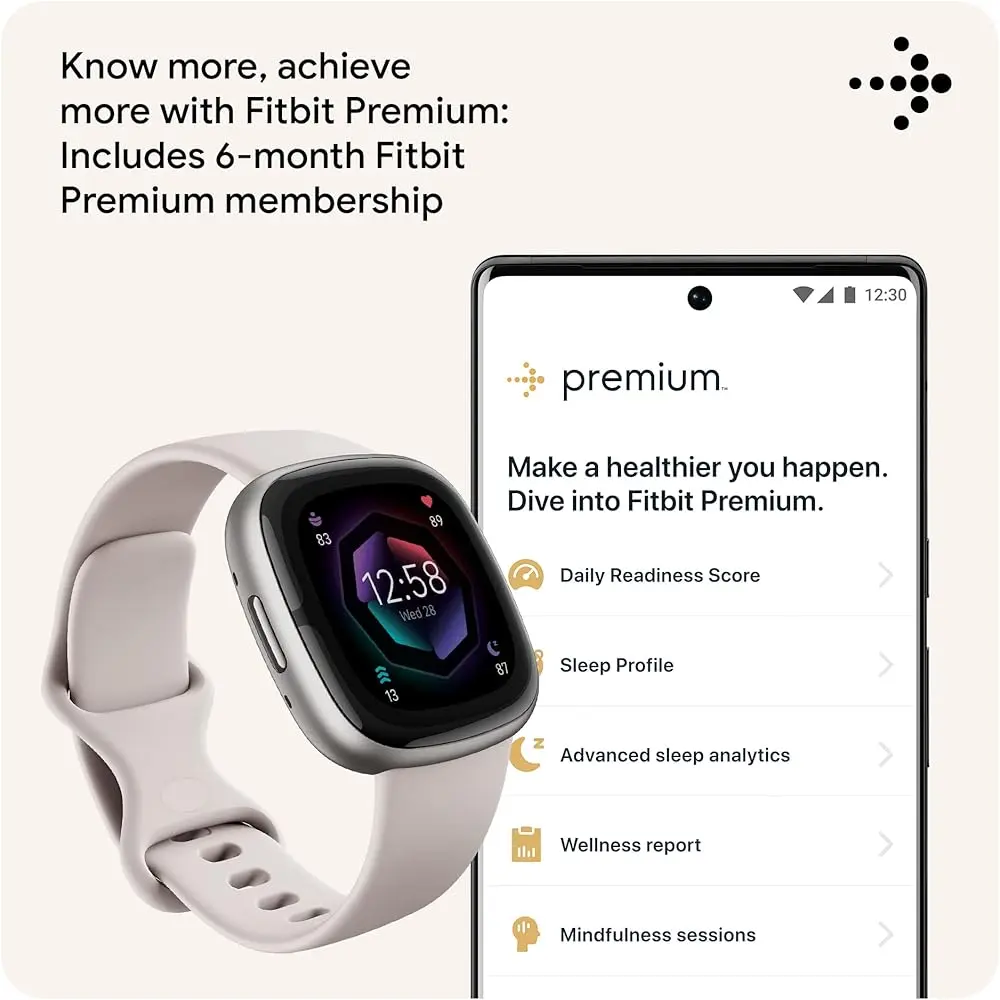 • Premium Features: The Fitbit Sense 2 includes a 6-month Premium membership, offering personalized insights, advanced analytics, and more to help you make the most of your health and fitness data.