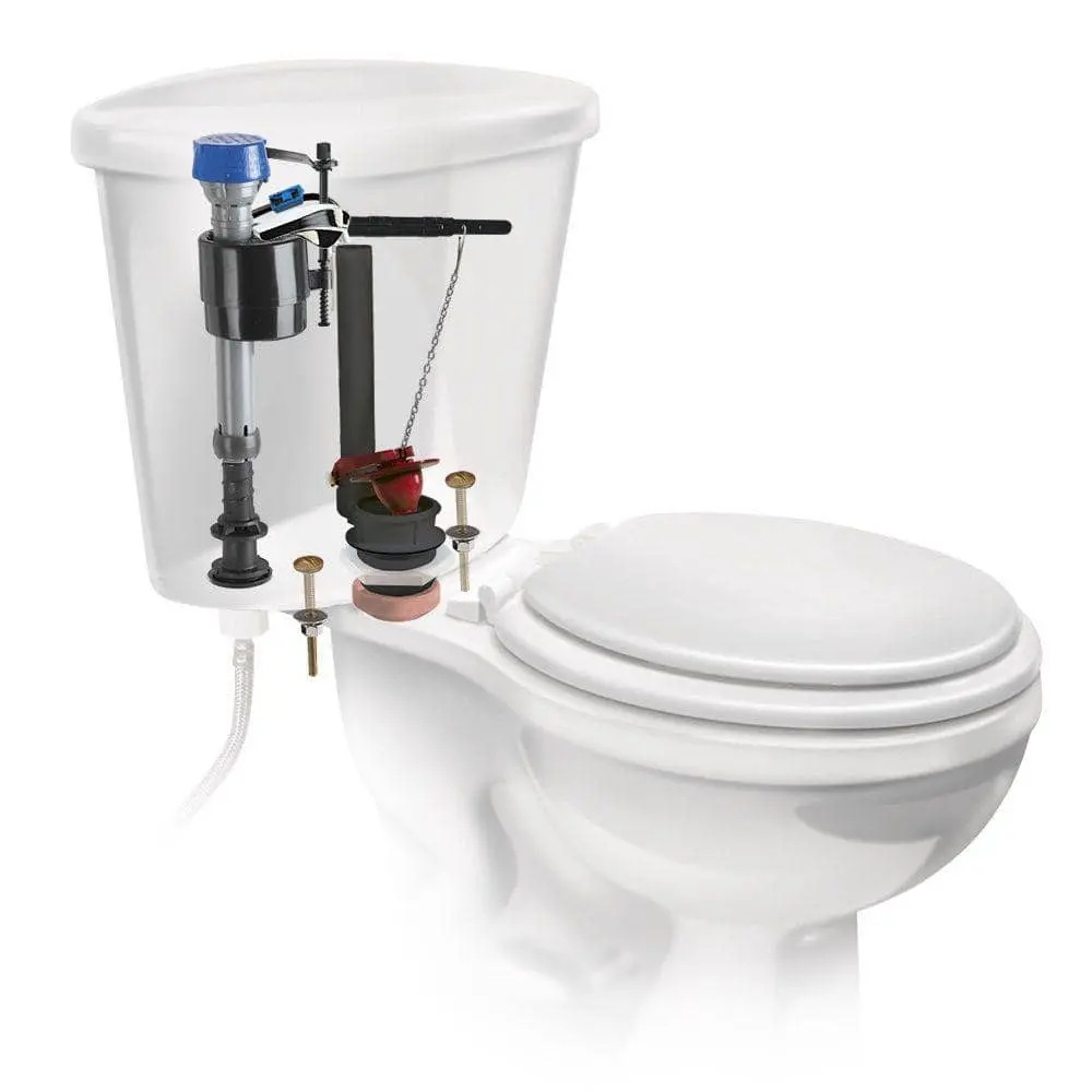The Fluidmaster 400ARHRKP10 All-In-One Toilet Repair Kit is the ultimate solution to enhance your toilet's performance. This comprehensive kit includes everything you need to restore your toilet to like-new condition. It features the PerforMAX Toilet Fill Valve for 2X greater refill rates, the 507AK PerforMAX 2-inch Flush Valve, Toilet Flapper for water conservation, a universal gasket, toilet handle, and all necessary hardware. With easy installation, this kit is designed to fit most toilets, optimizing performance and water efficiency. All parts are made from durable, corrosion-resistant materials. Note: the toilet gasket may not be compatible with some Gerber or Kohler models.