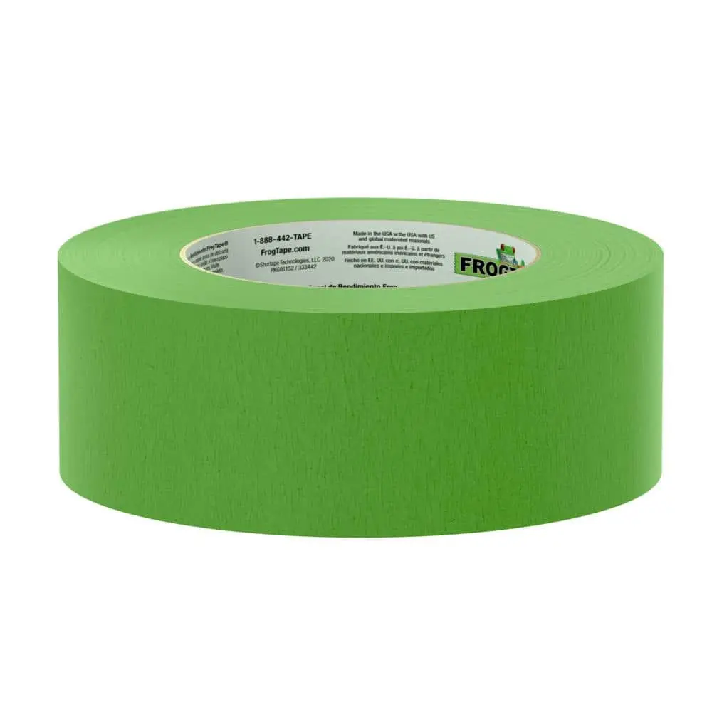 The FrogTape Multi-Surface 1.88 in. x 60 yds. Painter's Tape with PaintBlock features PaintBlock Technology, which prevents paint bleed, ensuring sharp, clean lines. It is designed for multi-surface use, making it safe for walls, trim, glass, and metal. The tape provides strong adhesion for a secure hold, yet it removes easily without leaving residue. With its UV & moisture resistance, it's suitable for both indoor and outdoor projects. The 1.88 in. x 60 yds. size offers ample coverage, making it ideal for various painting and surface protection tasks