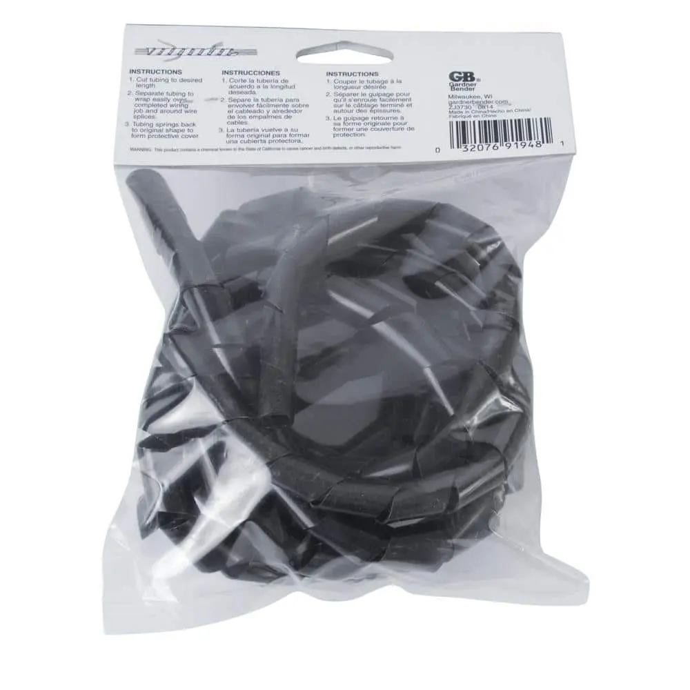 Gardner Bender provides effective solutions for managing wire and cable, ensuring safety and organization. Their flexible black spiral wrap helps prevent wire entanglement, a common safety hazard for both equipment and users. This wrap allows wires to break out at desired points and can be cut to any length. Designed for professional electricians, it offers an innovative way to keep cables neat and tidy.