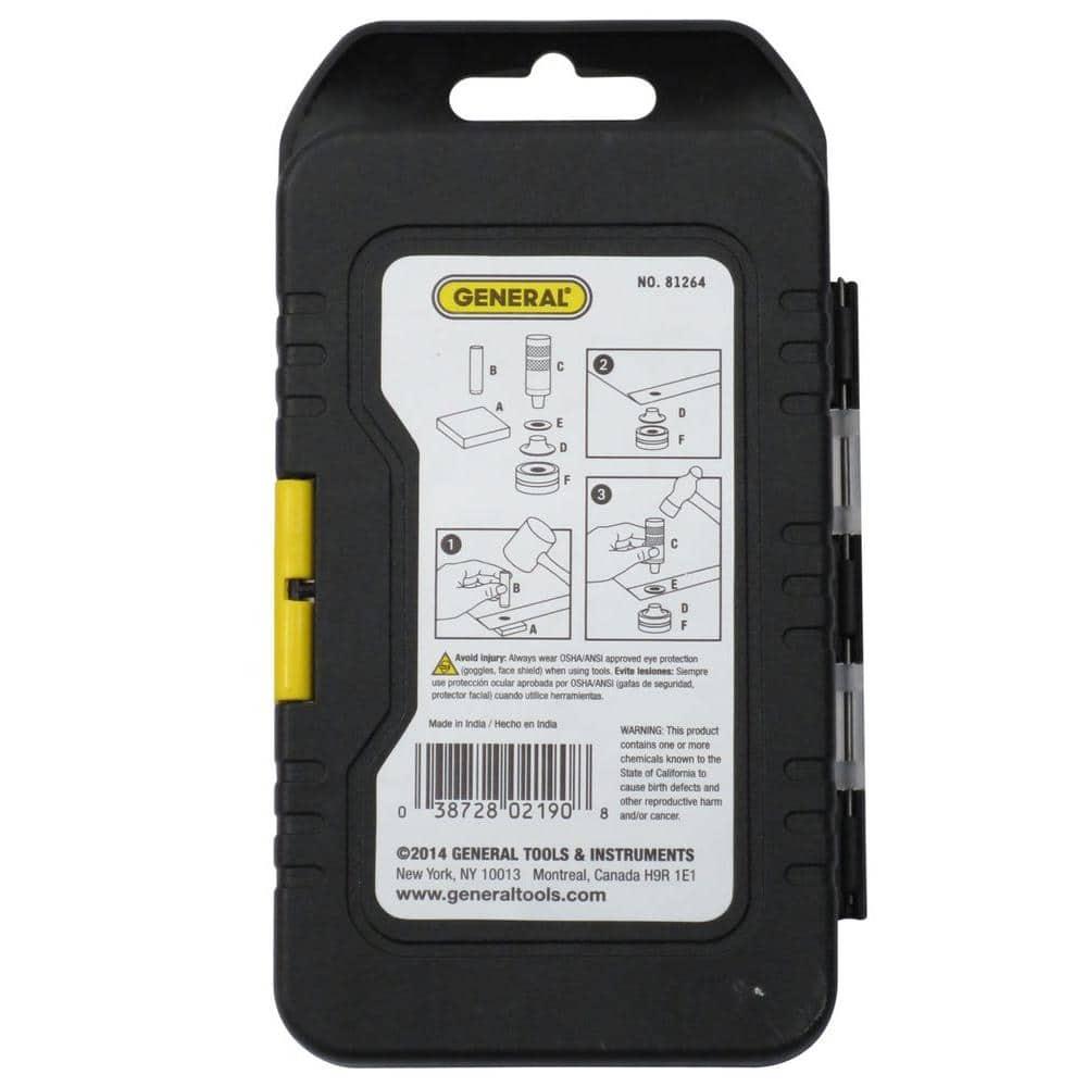 At General Tools, we specialize in delivering top-quality, specialty items designed to tackle a wide range of jobs. Our Grommet Kit is the cost-effective answer to repairing tarps, tents, awnings, and pool covers. Each user-friendly set includes a tough hardened steel hole cutter, a perfectly matched mandrel/anvil pair, a durable hardwood backer block, and a variety of grommets in sizes 1/2 inch and 3/8 inch. What's more, additional grommets are also available for purchase, making this kit the ultimate go-to solution for all your grommet needs.