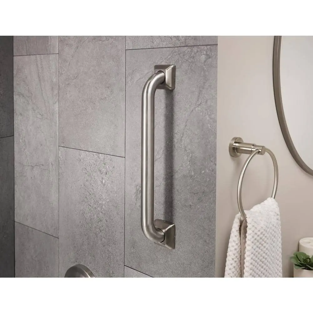 The Glacier Bay 16-Inch Grab Bar in brushed stainless steel combines both elegance and safety, making it an essential addition to your bathroom. Crafted from durable stainless steel, its sleek brushed finish not only enhances aesthetic appeal but also ensures long-lasting performance. Designed for easy installation, it includes concealed screw escutcheons for a seamless look and comes with six stainless steel screws for secure mounting. With a robust support capacity of up to 500 lbs., this grab bar exceeds ADA standards, providing peace of mind and enhancing accessibility in your space. Experience the perfect blend of style and safety with this beautiful, functional grab bar.