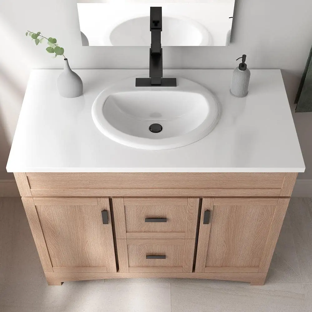 Every detail matters when creating your dream bathroom. The classic design of the Glacier Bay drop-in bathroom sink complements a variety of vanity styles. Featuring an oval basin in a timeless white finish, this sink combines superb utility with lasting durability, making it a practical and elegant choice for any bathroom