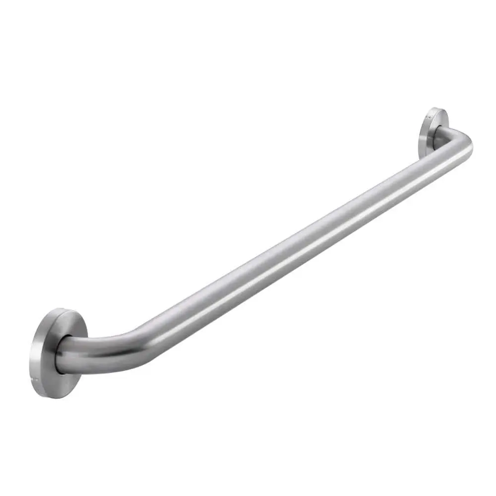 The Glacier Bay 36-Inch Concealed Screw Grab Bar features a brushed stainless steel finish and is crafted from durable stainless steel, exceeding ADA standards for safety. Designed to work with the WingIts stud-less installation fastener, it can support up to 500 lbs without the need for studs. This grab bar is ideal for installation near toilets, tubs, or showers, providing added safety and stability in the bathroom
