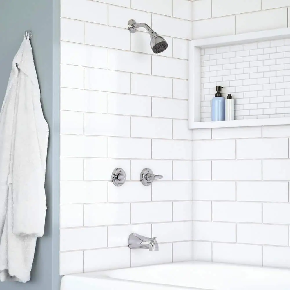 The Glacier Bay Aragon 2-handle 1-spray tub and shower faucet in chrome offers a classic blend of practicality and style, enhancing any bathroom decor. WaterSense certified, it effectively reduces water usage, while washerless cartridges guarantee smooth operation and durability. The timeless two-handle lever design allows for precise control over water flow and temperature, and the user-friendly single-function shower head simplifies your showering experience. With its durable, easy-to-clean chrome finish, this faucet ensures a consistent temperature for a safe and enjoyable shower.