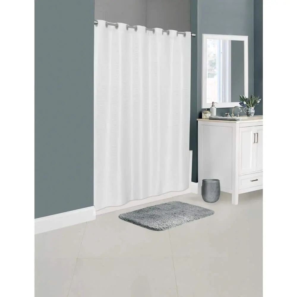 The InstaCurtain Ottoman Stripe Shower Curtain offers a luxurious look that transforms your bathroom into a serene retreat. With its elegant white horizontal stripes, this fabric curtain adds a touch of sophistication to your shower area.What truly sets the InstaCurtain apart is its convenient built-in hooks, eliminating the need for separate shower hooks or rings. You can hang it effortlessly in just three easy steps, making it a hassle-free addition to your bath space. Experience the perfect blend of style and simplicity with this all-in-one curtain solution.