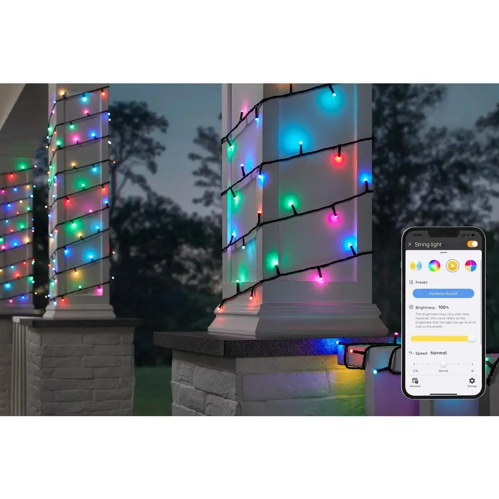Transform your indoor and outdoor spaces with the Hampton Bay Smart 40 ft. Color-Changing Music Sync String Lights powered by Hubspace. This 100-light string features a party mode that syncs the lights to your music, creating a dynamic atmosphere for gatherings, parties, and special events. With the easy-to-use Hubspace app, you can customize the colors and patterns of the lights, or choose from built-in themes. The app offers access to millions of color options, including warm and cool white, to match any occasion. Each set includes 100 weather-resistant LED bulbs, spanning 40 feet, with the option to connect up to two sets together for extended coverage.