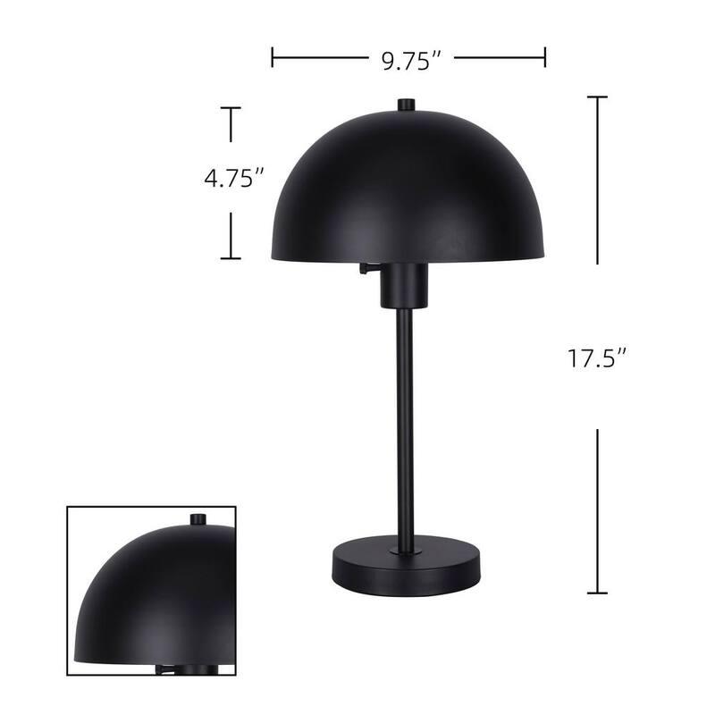 A contemporary twist on mid-century style, the Corbin metal dome table lamp exudes timeless elegance. Featuring a sleek, industrial-inspired metal dome shade with a refined black finish, this lamp combines modern sophistication with practical functionality. The base is equipped with a 2-prong outlet, allowing you to conveniently charge your electronic devices. Ideal for a bedside table, office desk, reading nook, or living room, this lamp adds a touch of class to any space.