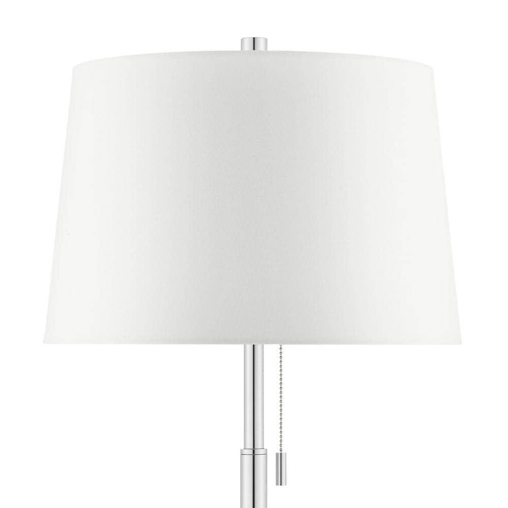 Enhance any room with the sophistication of the Ganton floor lamp. Featuring a timeless design with a striking polished nickel finish, this lamp exudes classic elegance. The contemporary white drum fabric shade casts a warm, ambient glow, while the sturdy, flat metal base adds a touch of style and stability. Whether used to complement existing dor or as a standout piece on its own, this floor lamp will elevate both the brightness and visual appeal of your living space.
