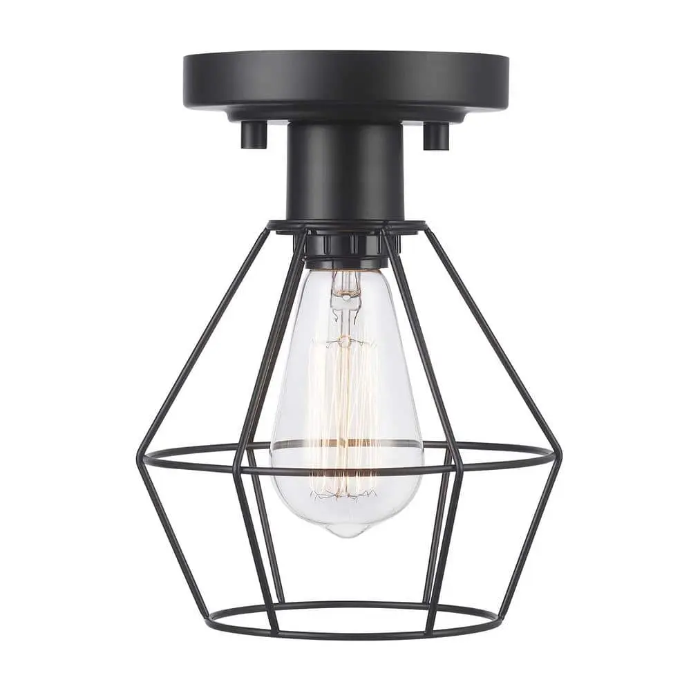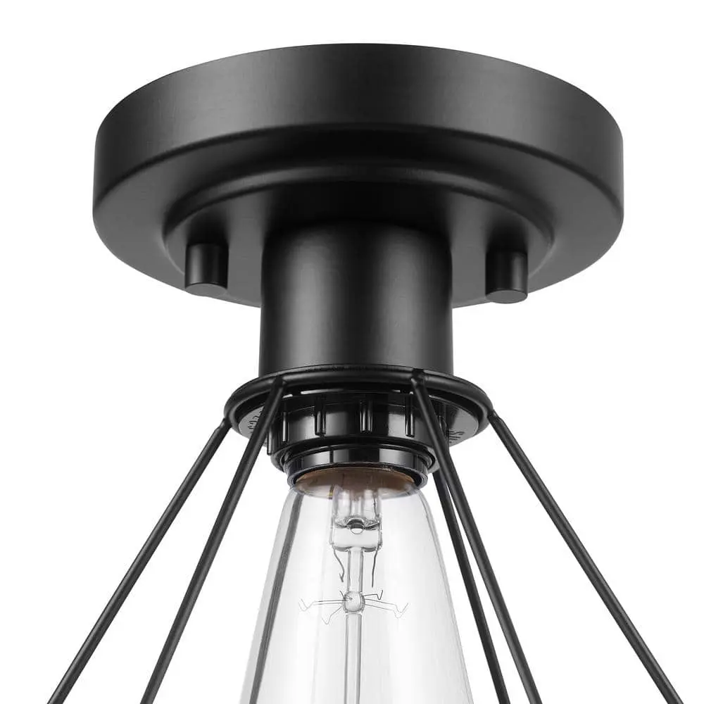 The Bryson flush mount by Globe Electric features a striking geometric cage design that adds a mid-century modern touch to any room, enhancing both texture and style. This 1-light fixture boasts a sleek matte black finish, beautifully complemented by a black socket, making it a bold statement piece for any space. Its timeless open socket design is perfect for smaller areas like dorm rooms or cozy dining spaces, and the open design allows you to easily change the look by swapping bulbs. Try a vintage Edison bulb for a classic touch, or opt for a tube-shaped or round bulb to create a more modern vibe—the possibilities are endless.