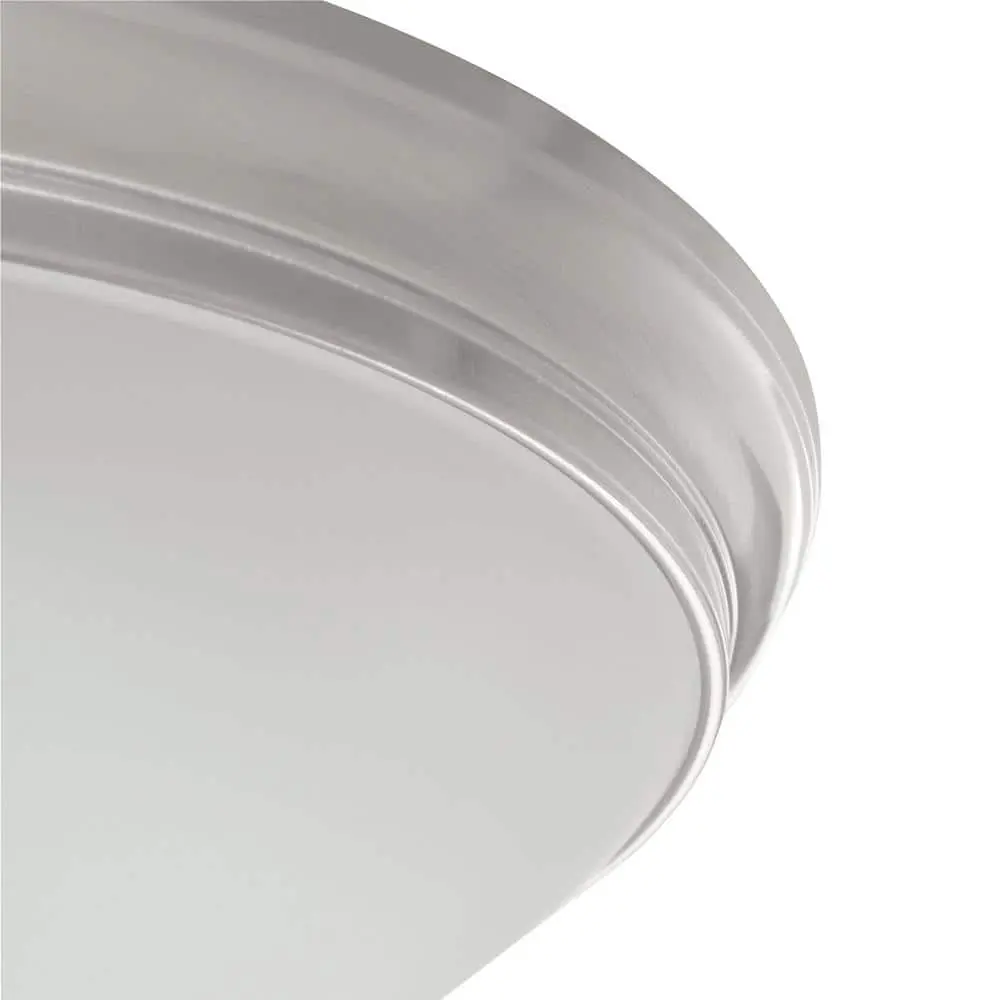 This 11-inch, 20-Watt Brushed Nickel Ceiling Flushmount uses advanced technology with a 90 CRI for superior color rendering, delivering ideal, glare-free illumination that enhances the natural light in your home or office. Thanks to its long-lasting LED technology, it provides light output comparable to a 120-Watt incandescent bulb while consuming less than 20% of the energy, offering significant savings year-round. It also features a selectable color temperature, allowing you to choose from soft 2700K, warm 3000K, bright 3500K, cool 4000K, or daylight 5000K to suit your preferred lighting ambiance.