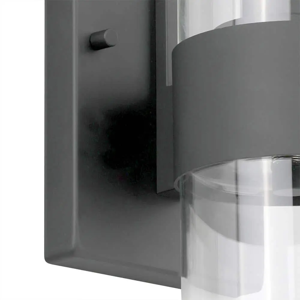 This sconce features a modern minimalist design, showcasing a sleek metal band that secures a clear glass cylinder, with an Edison bulb glowing like a flickering candle inside. The matte black finish adds a polished touch to this elegant fixture.