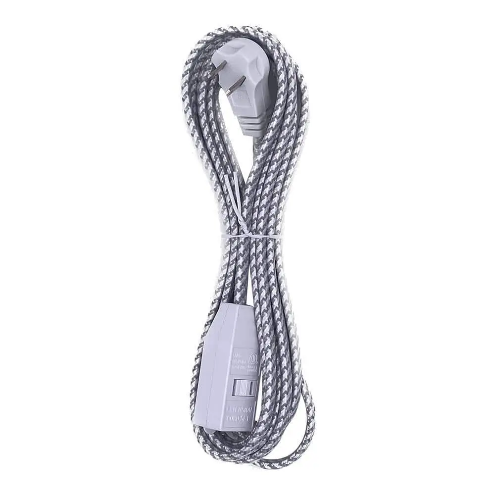 The HDX 12 ft. 16/2 Braided Extension Cord offers convenience and functionality with 3 polarized outlets, making it ideal for table lamps, floor lamps, small appliances, phone chargers, and other electronic devices. Each outlet is equipped with a safety cover for enhanced protection. The 12 ft. durable fabric cord provides a stylish and tangle-resistant solution, perfect for your home or workspace. The low-profile 45° flat plug saves space and allows furniture or media to sit closer to the wall. This cord has a 13 Amp, 125-Volt, and 1,625-Watt electrical capacity for reliable performance.