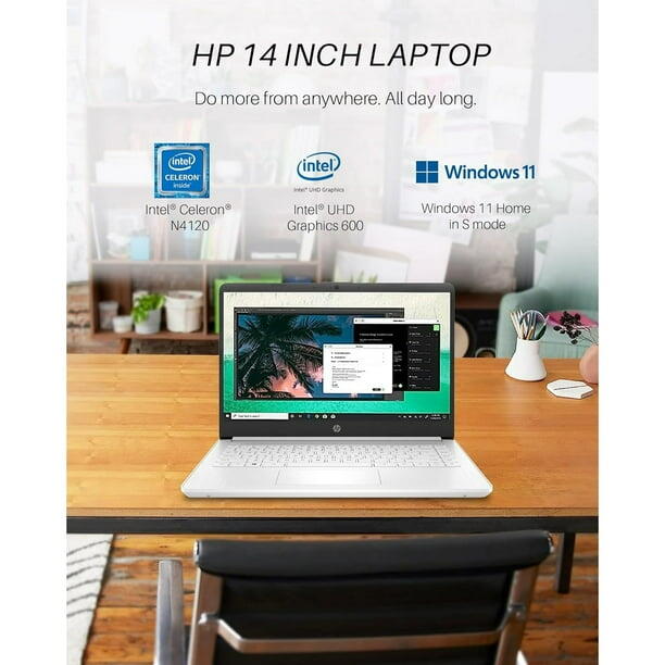 Stay productive and connected with the compact and reliable HP 14" Laptop, designed to handle everyday tasks efficiently. Powered by an Intel Celeron N4120 processor and Windows 11 in S Mode, this lightweight device is perfect for school, work, or casual use. It features a vibrant HD display, fast connectivity, and HP Fast Charge technology to keep you going throughout the day.