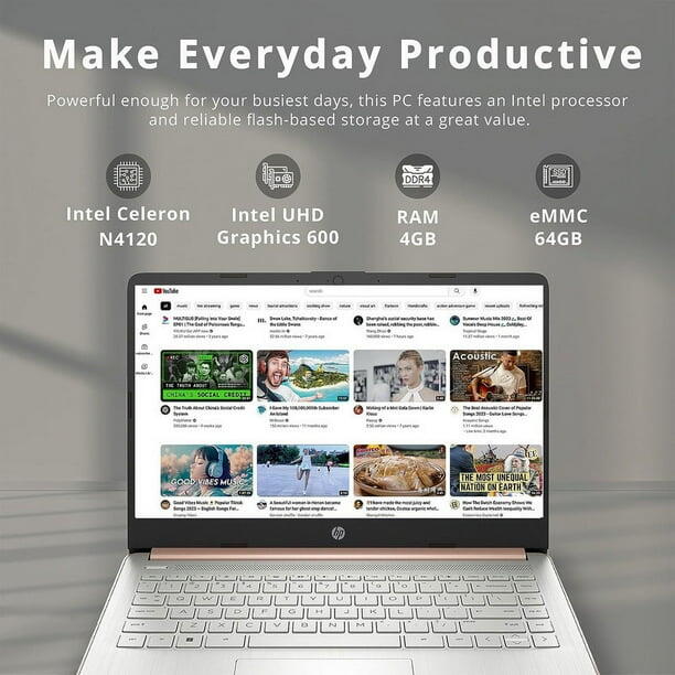 Handle schoolwork, emails, web browsing, and streaming with ease using the Intel Celeron N4120 processor (up to 2.6GHz burst frequency) and Intel UHD Graphics 600. - Ample Memory & Storage