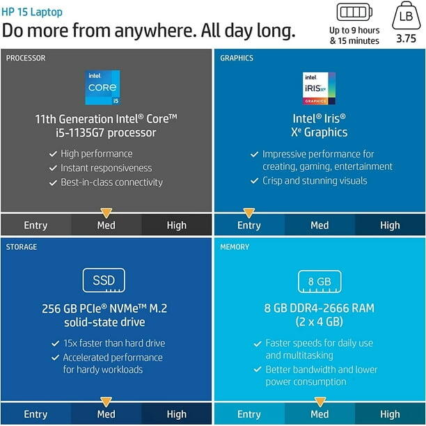 Stay productive and entertained wherever you are with the HP 15.6" Laptop, a sleek and powerful device designed for work, study, or play. With its compact form factor, long battery life, and efficient Intel processor, this laptop is built to handle your everyday tasks with ease. Whether you're multitasking across tabs or streaming your favorite shows, you'll enjoy a seamless experience with impressive performance and visuals.