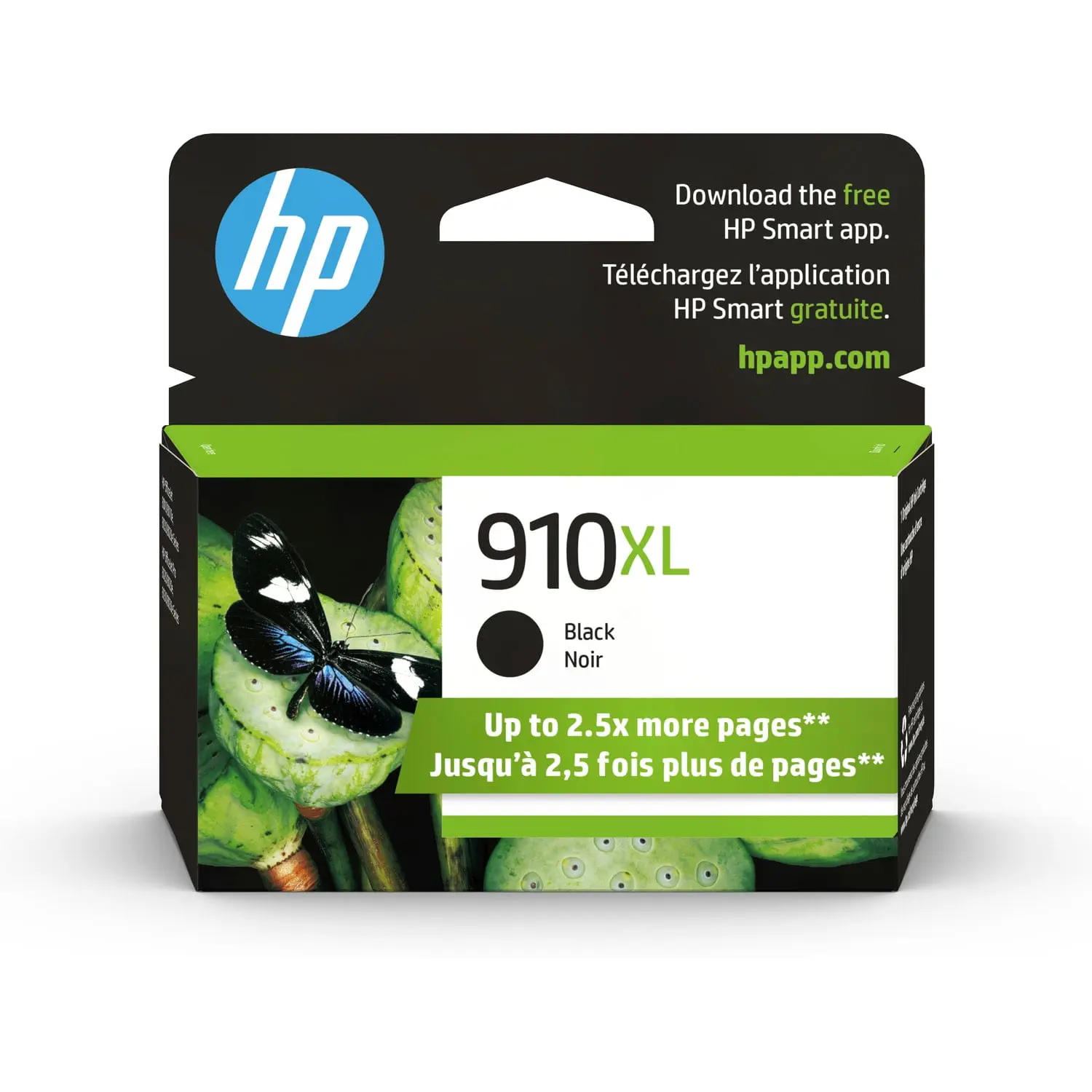 These cartridges provide genuine ink for your HP printer, with the HP 910XL cartridge yielding approximately 825 pages. Each box contains one new Original HP 910XL Black Ink Cartridge (3YL65AN).