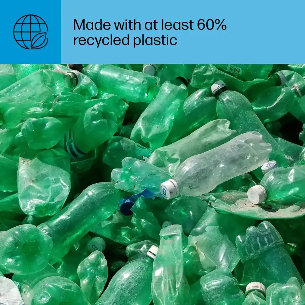 - Sustainable design: Made with at least 60% recycled plastic, HP helps forests thrive by protecting, restoring, and managing forests with every page you print.