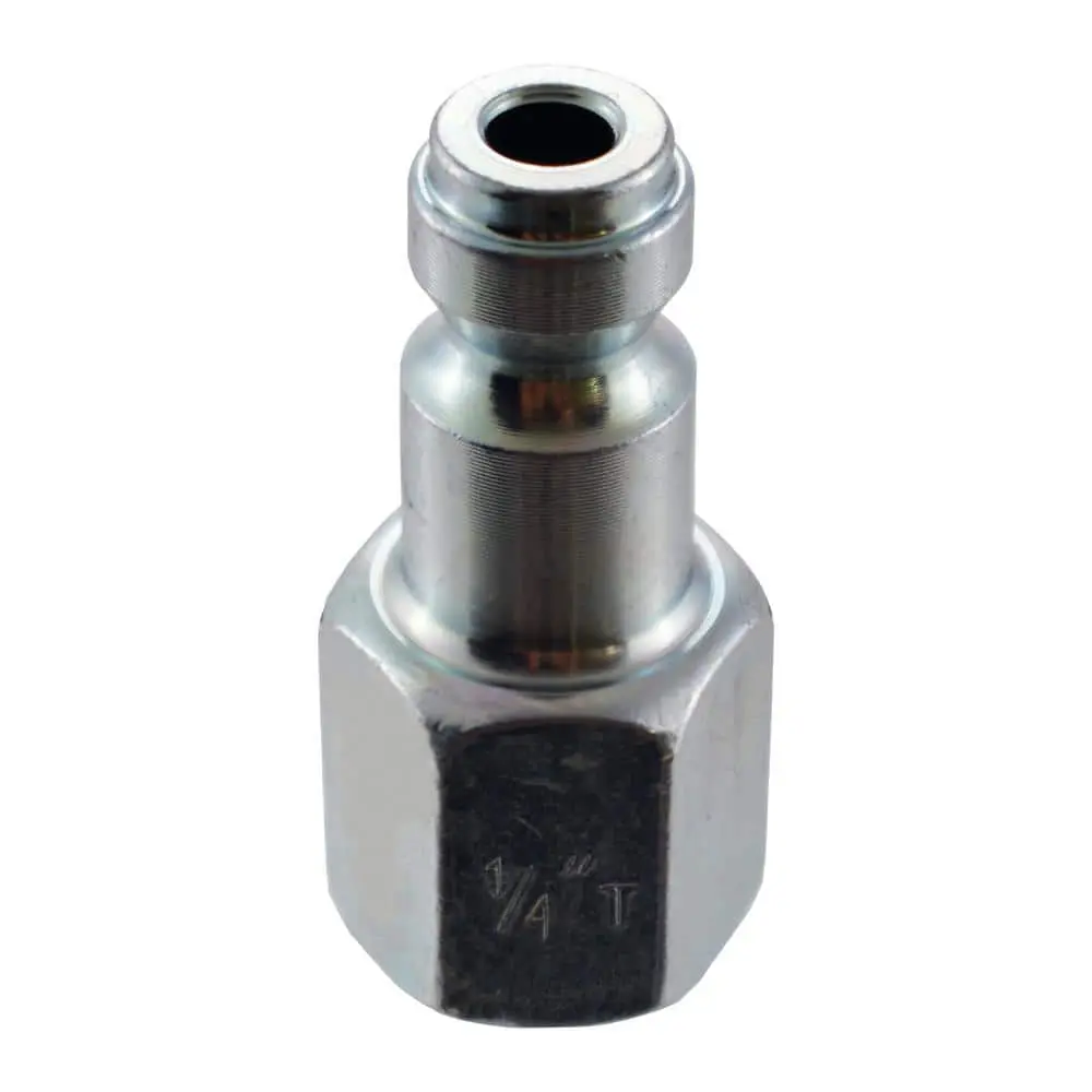 The Husky 1/4 in. NPTF Female Auto Plug is built for seamless connection between air compressor components. Constructed from heat-treated steel for enhanced durability and coated with zinc to resist corrosion, this plug ensures reliable performance. Designed for use with pressures up to 155 psi, it provides a secure and efficient connection.