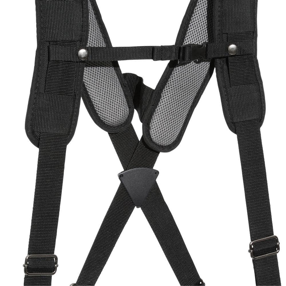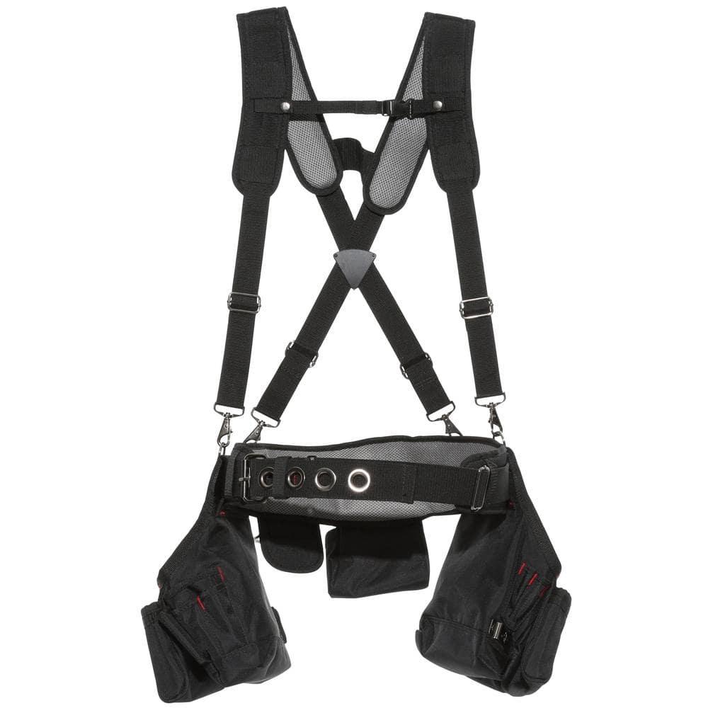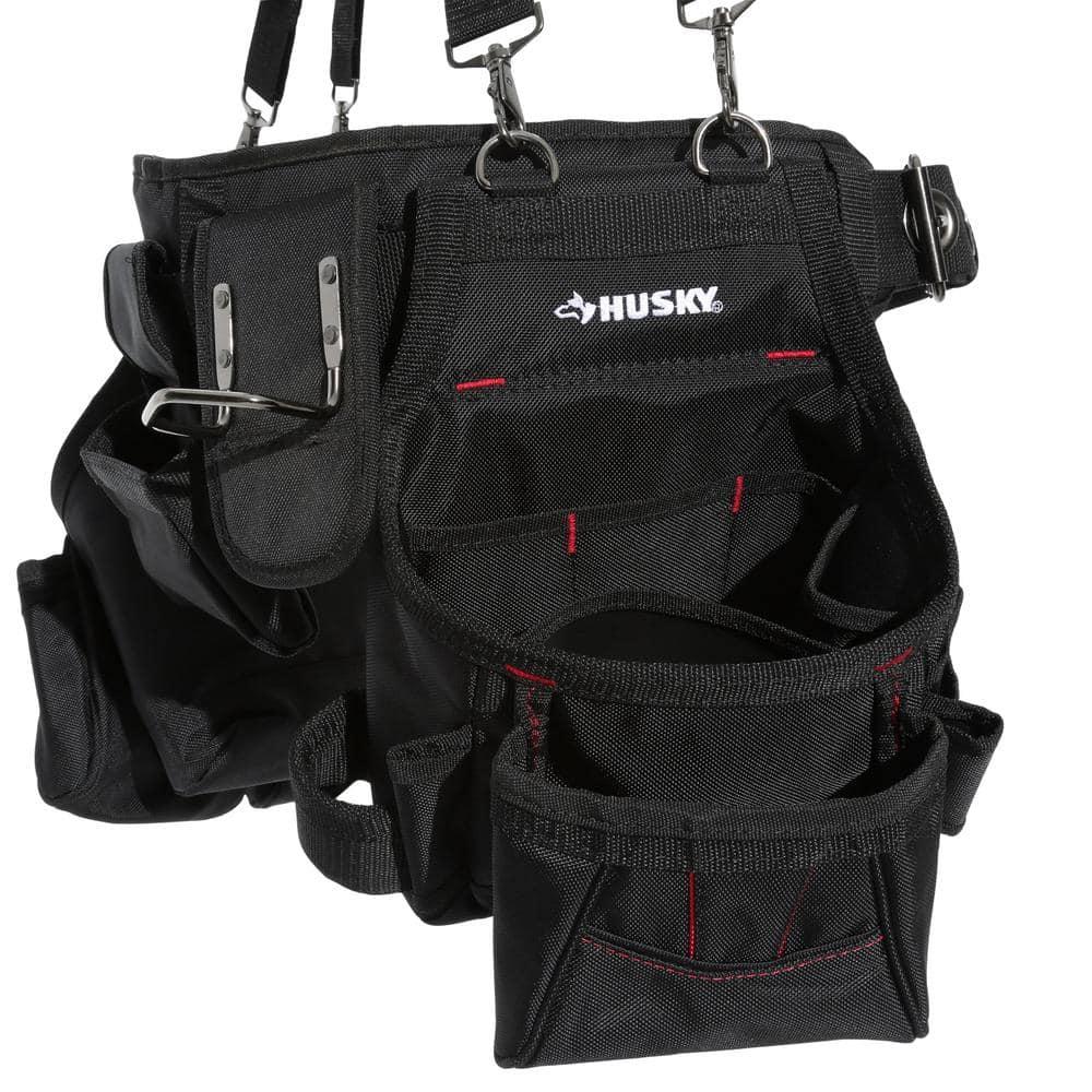 Husky 2-Bag 18-Pocket Black Framer's Suspension Rig Work Tool Belt: Your Essential Jobsite CompanionExperience the pinnacle of tool storage with the Heavy Duty Husky 2-Bag 18-Pocket Black Framer's Suspension Rig Work Tool Belt. This premium tool belt is meticulously crafted to deliver unparalleled durability, comfort, and functionality for professional tradesmen.Key Features:Unmatched Durability: Constructed from upgraded 1680 heavy-duty poly fabric, this tool belt is engineered to withstand the harshest jobsite conditions, ensuring long-lasting performance.Ergonomic Comfort: The thoughtfully designed suspenders and adjustable belt offer a customized fit for most adults, providing exceptional comfort and support throughout your workday.Generous Storage: With 18 meticulously placed pockets, including designated slots for your utility knife and speed square, you'll have ample space to organize and access your essential tools and supplies with ease.Practical Features: The thoughtfully integrated tape measure pouch and metal and web hammer loops enhance your efficiency and convenience on the jobsite.Weather-Resistant Protection: The water-resistant material safeguards your tools from the elements, ensuring they remain in optimal condition even in challenging environments.Elevate your toolkit today with the Husky 2-Bag 18-Pocket Black Framer's Suspension Rig Work Tool Belt.
