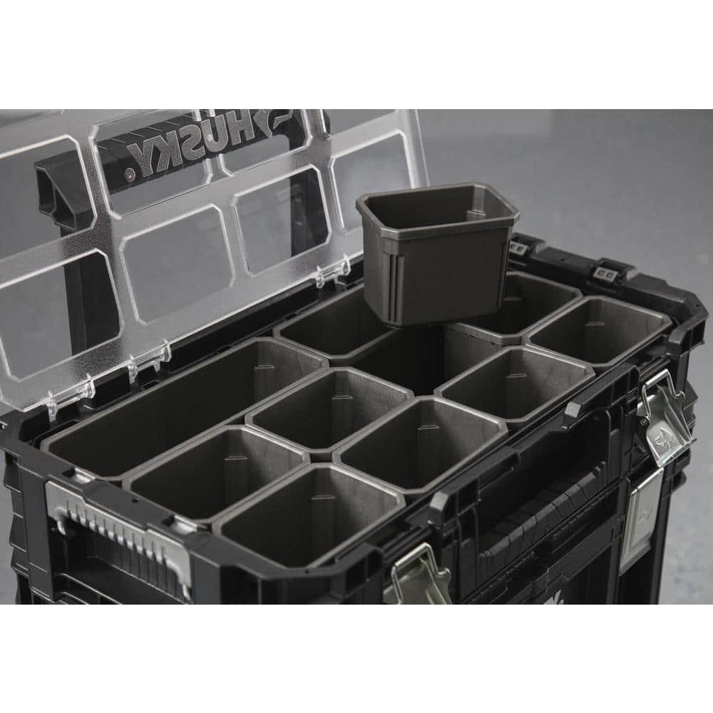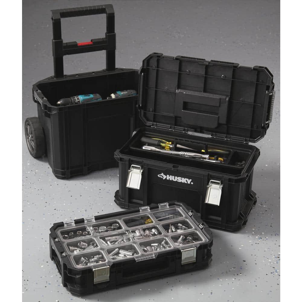 Introducing the Husky Connect 22-Inch Rolling Cart System: Your Ultimate Mobile Workshop.Need a storage solution that can keep up with your busy lifestyle? Look no further than the Husky Connect 22-Inch Rolling Cart System. This 3-piece system includes a rolling cart, toolbox, and small parts organizer, giving you the flexibility to customize your storage setup to fit your specific needs.With the Husky Connect system, you can easily connect and disconnect the components to create the perfect storage solution for any job. The rolling cart base is large enough to haul your power tools, while the 7-inch rolling wheels and telescoping handle make it easy to maneuver around your workspace.The 22-inch tool box features a removable tray for added versatility, and the 22-inch deep pro organizer comes with 12 removable bins to keep your small parts and accessories organized.Key features:3-piece mobile system for customizable storageInterconnecting system for easy customization22-inch deep pro organizer with 12 removable bins22-inch tool box with removable tray22-inch rolling cart with 7-inch wheels and telescoping handleCompatible with the Husky Connect cantilever toolbox and organizerExperience the convenience of the Husky Connect 22-Inch Rolling Cart System. Order yours today and take your workspace to the next level.