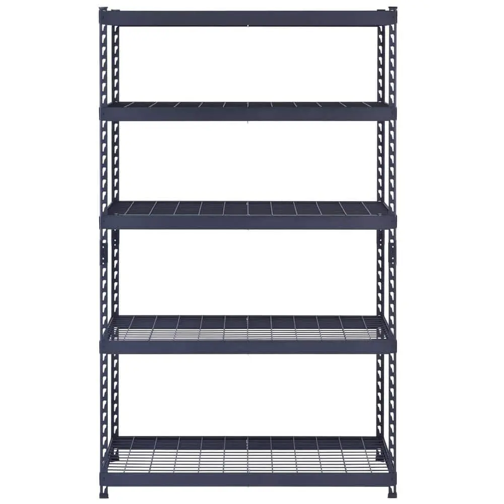 The Husky 5-Shelf Steel Heavy-Duty Garage Storage Shelving Unit is designed to provide robust and reliable storage for all your garage needs. Constructed with heavy-duty steel, it ensures lasting durability and strength for holding heavy items. The black finish not only enhances its sleek look but also provides added corrosion resistance. Featuring 5 shelves that are adjustable, you can customize the height to accommodate a variety of items. With the ability to support up to 1,000 lbs., this unit is perfect for storing tools and equipment. Measuring 48 in. W x 24 in. D x 78 in. H, it offers ample storage space. The unit is easy to assemble with no tools required, making setup quick and hassle-free
