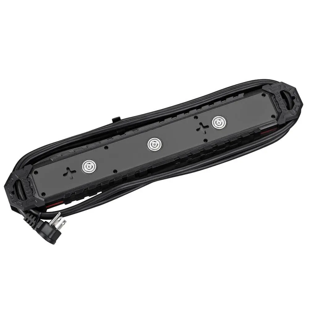 The Husky 8 ft. 6-Outlet Surge Protector with USB-A and USB-C connections is perfect for powering tools and electrical devices in your workshop or garage. Built with durable rubber covers and a thick bumper, it is designed to handle heavy-duty use. It features an 8 ft. cord with a 45º angled plug for extended reach and added flexibility.