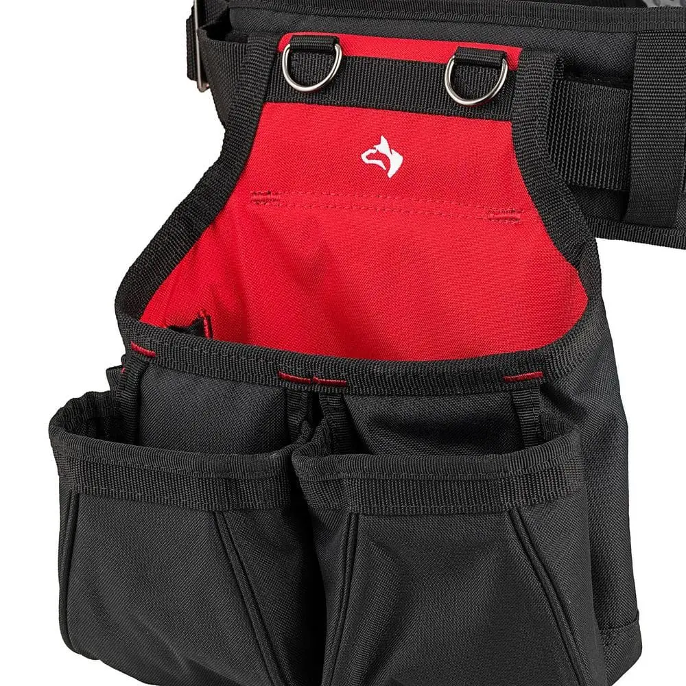 The Husky Contractors 2-Bag Work Tool Belt with Suspenders is built for durability with its heavy-duty construction, made from wear-resistant fabric for long-lasting use. Featuring a 2-bag design, it provides spacious compartments to keep tools and accessories organized and easily accessible. The adjustable suspenders offer added support and comfort for all-day wear, while reinforced stitching ensures strength in tough work environments. With quick-release buckles, the belt is easy to put on and take off, and its ergonomic fit enhances comfort and mobility during heavy-duty tasks