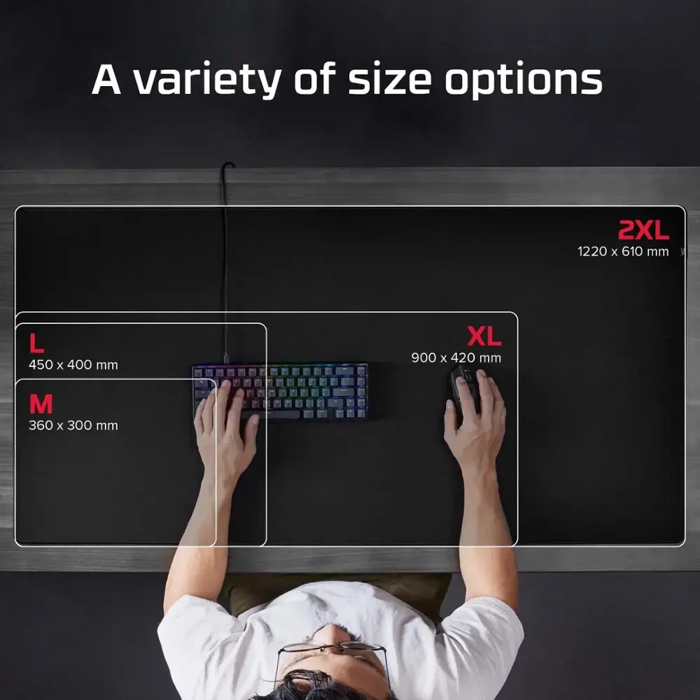 The HyperX Pulsefire Mat Gaming Mouse Pad is engineered for durability and precision, providing an optimized surface with anti-fray stitching to enhance both performance and comfort. With its anti-slip rubber underside and cushioned padding, this mouse pad offers superior grip and comfort for extended gaming sessions. The flat surface ensures a smooth, consistent mouse glide, and its rollable design makes it easy to carry.