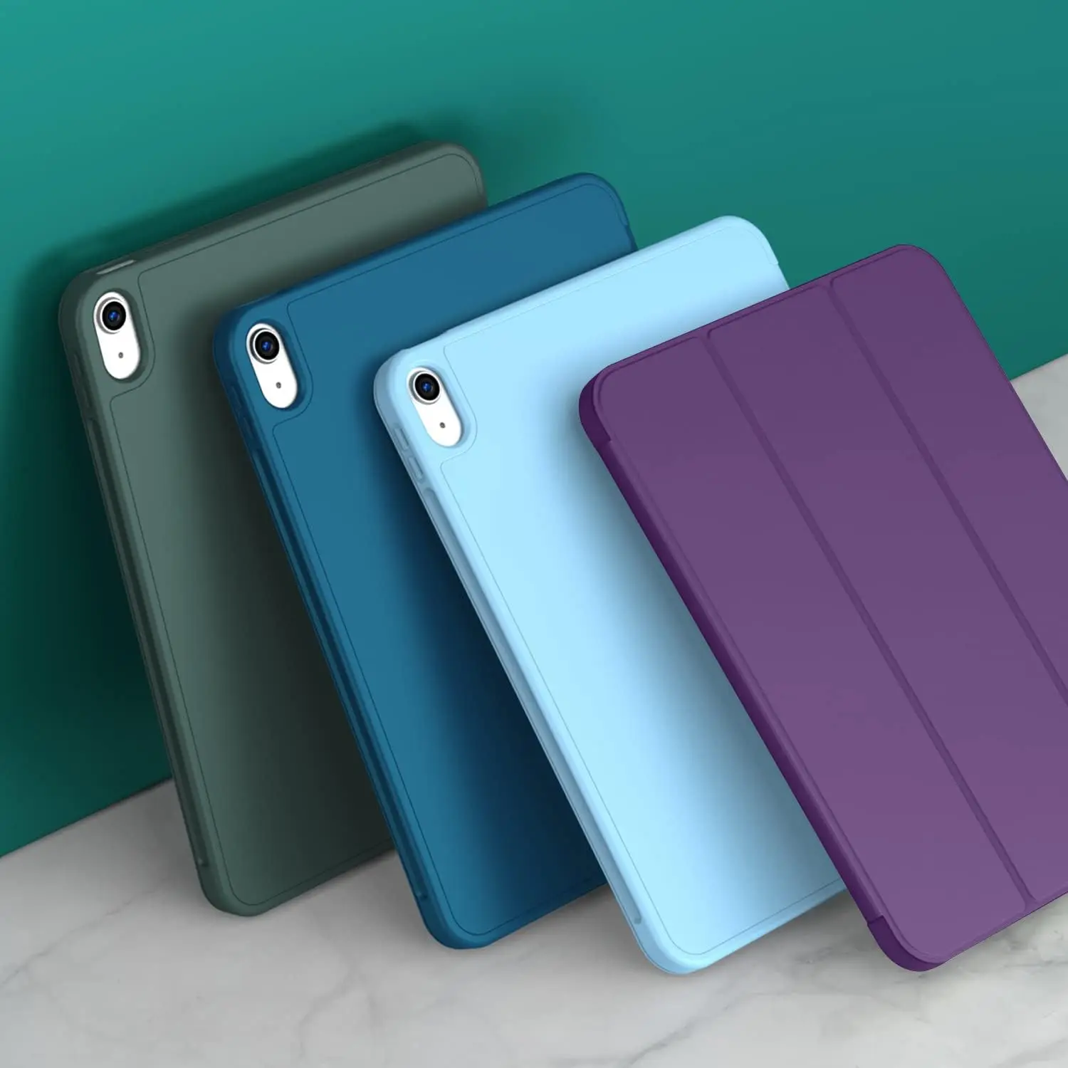 The iMieet New iPad 10.9 Inch Case (10th Gen, 2022) features a slim and lightweight design made from durable TPU material, ensuring protection from scratches and bumps. It is compatible exclusively with the iPad 10.9-inch 10th Generation (2022) model and includes a built-in Apple Pencil holder, supporting magnetic attachment and wireless charging. The case has a trifold stand for versatile viewing angles, an auto wake/sleep function, and precise cutouts for easy access to ports and features. Not compatible with other iPad models.