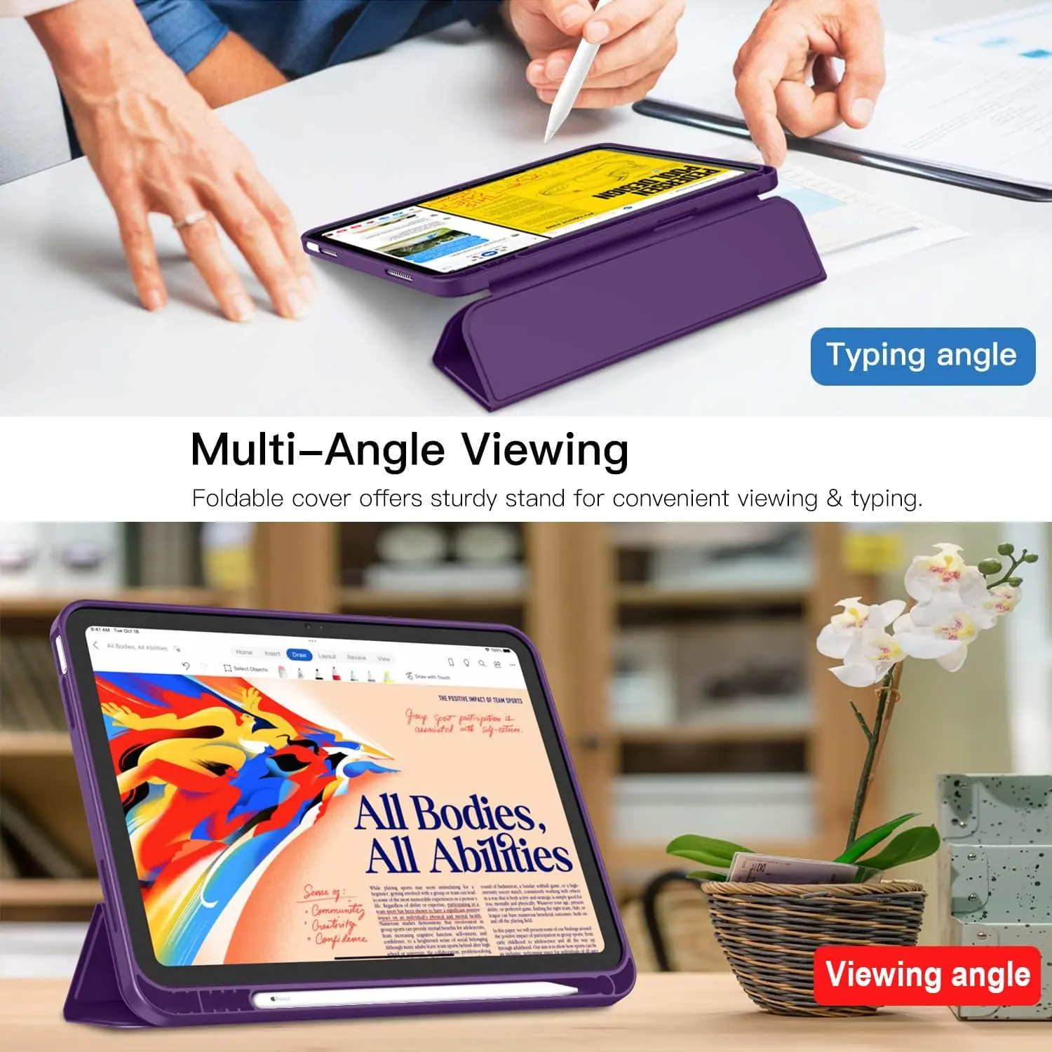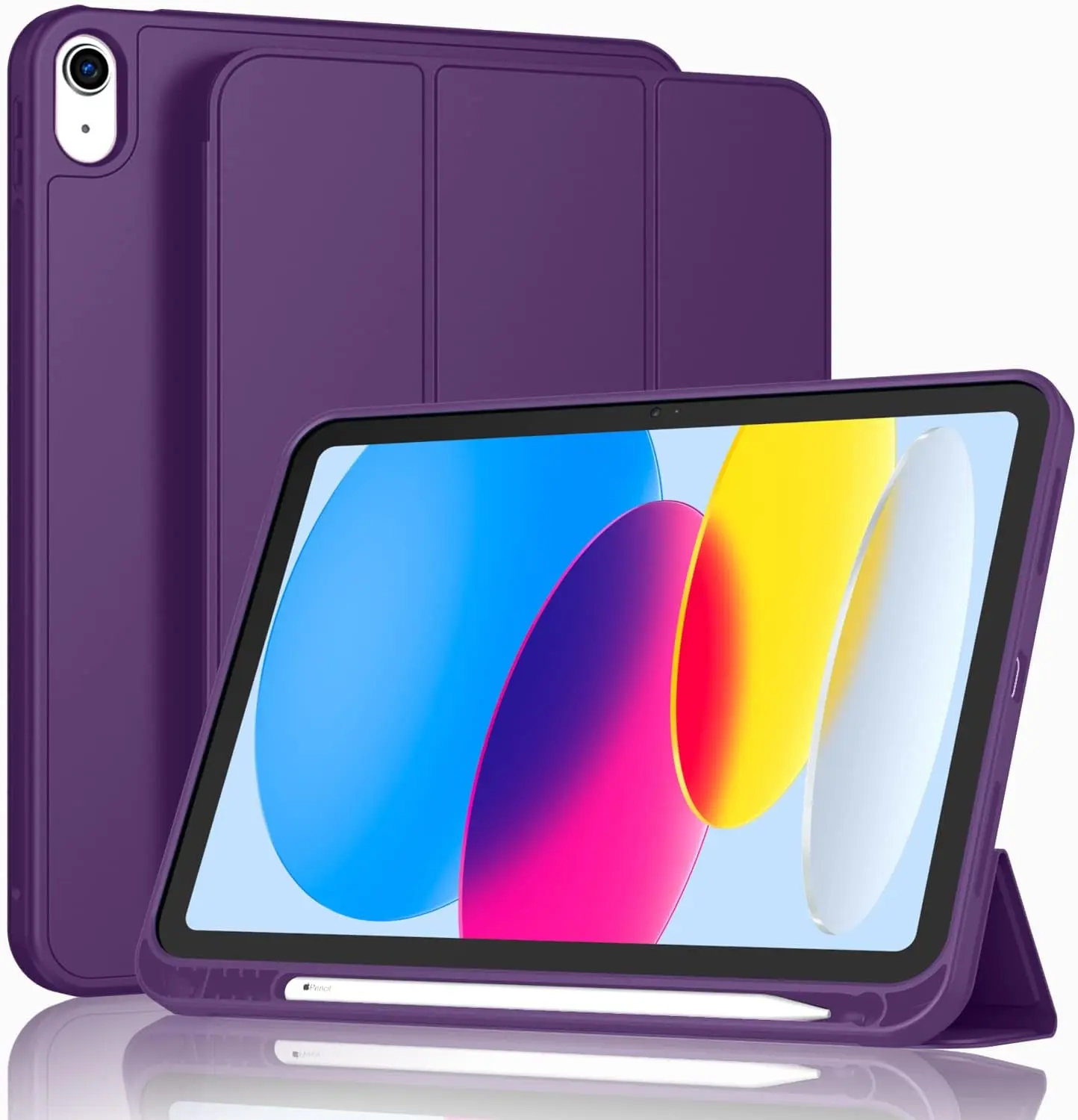 iMieet Case for New iPad 10.9 Inch (10th Gen, 2022) - Trifold Stand with Pencil Holder, Soft TPU Back, and Auto Wake/Sleep (Dark Purple)