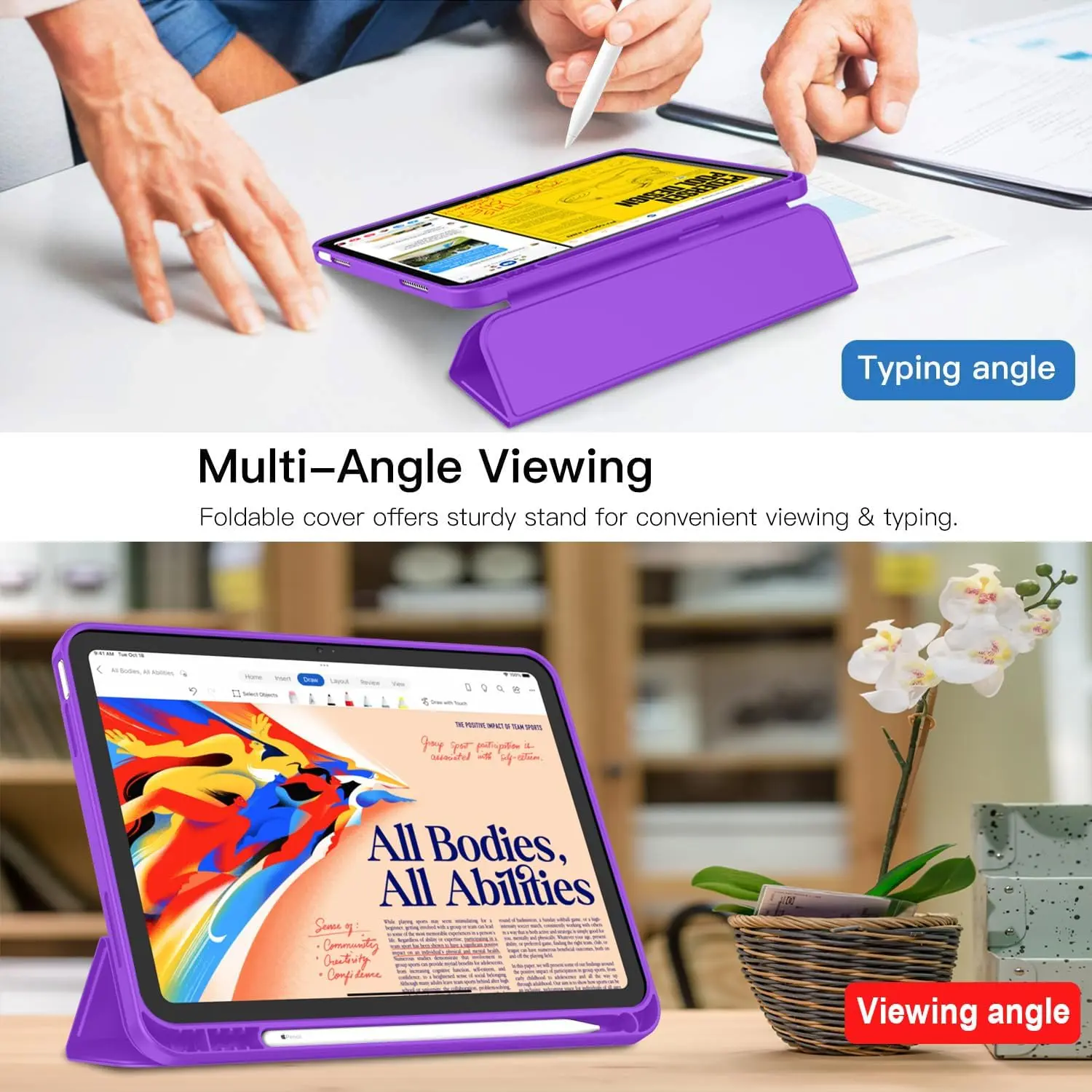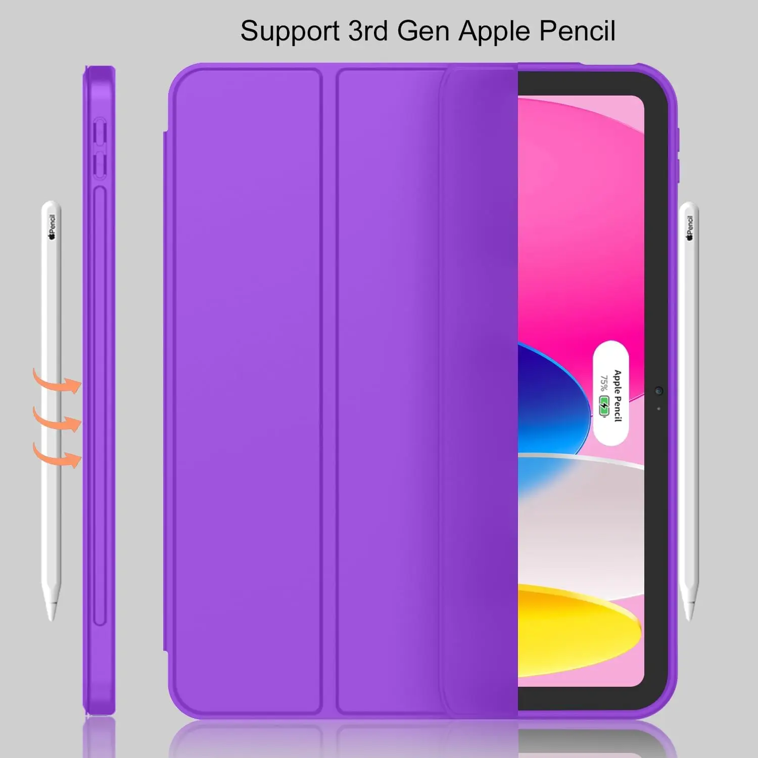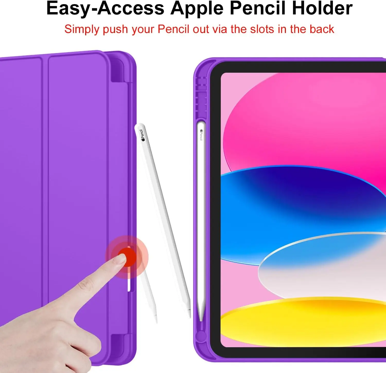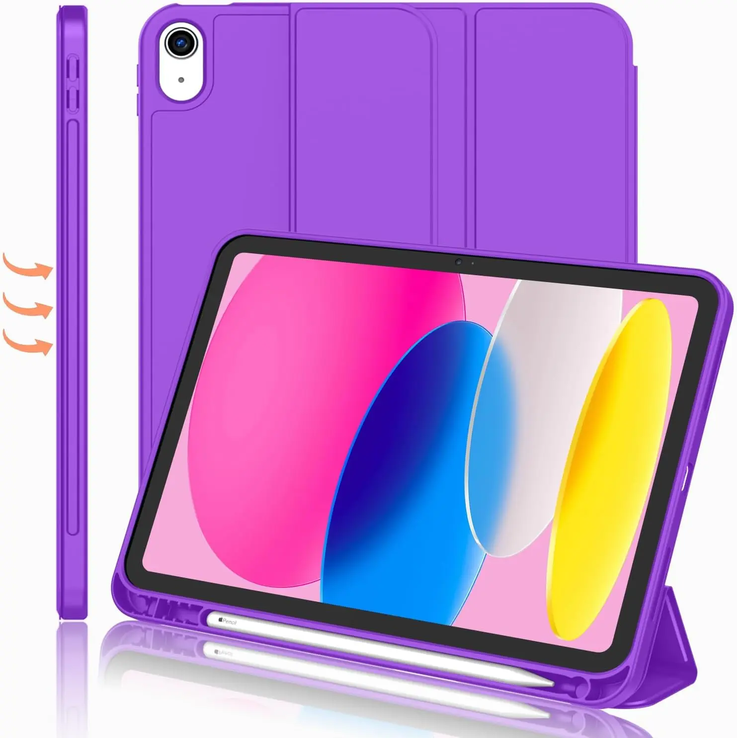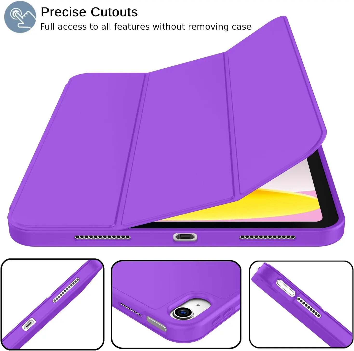 iMieet Case for New iPad 10.9 Inch (10th Gen, 2022) - Trifold Stand with Pencil Holder, Soft TPU Back, and Auto Wake/Sleep (Grape Purple)
