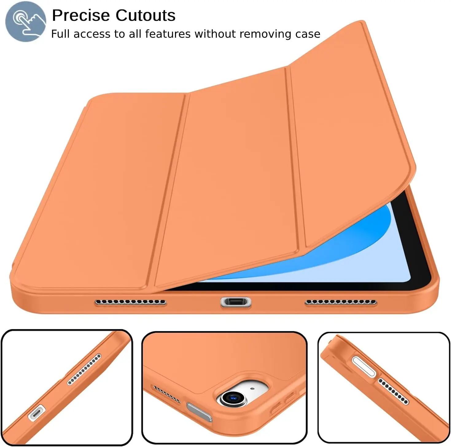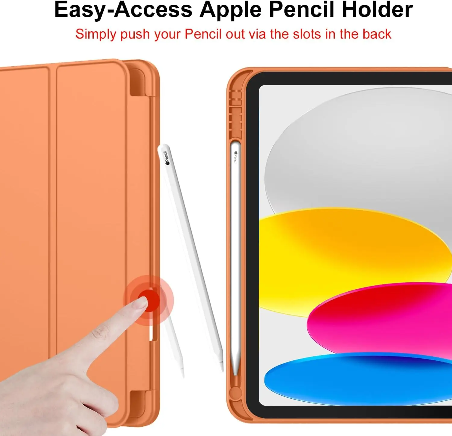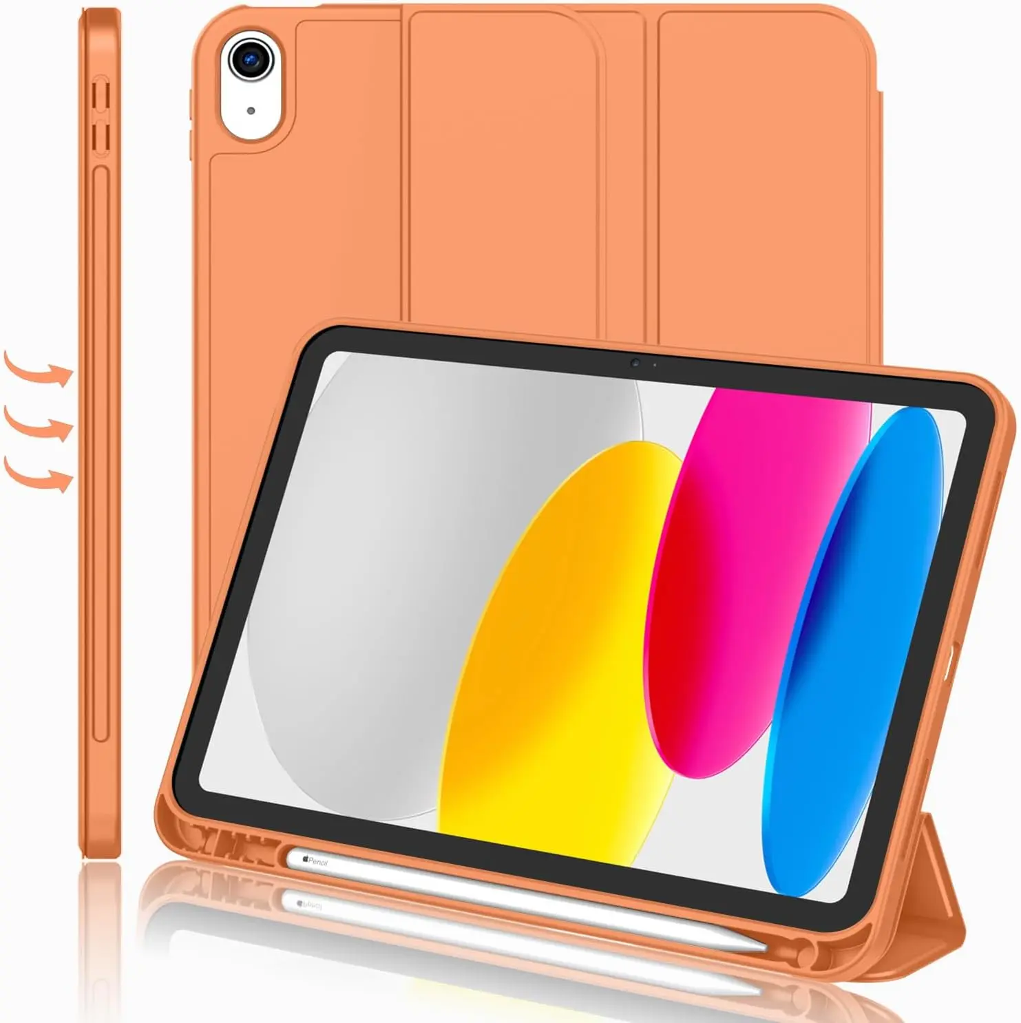 iMieet Case for New iPad 10.9 Inch (10th Gen, 2022) - Trifold Stand with Pencil Holder, Soft TPU Back, and Auto Wake/Sleep (Orange)
