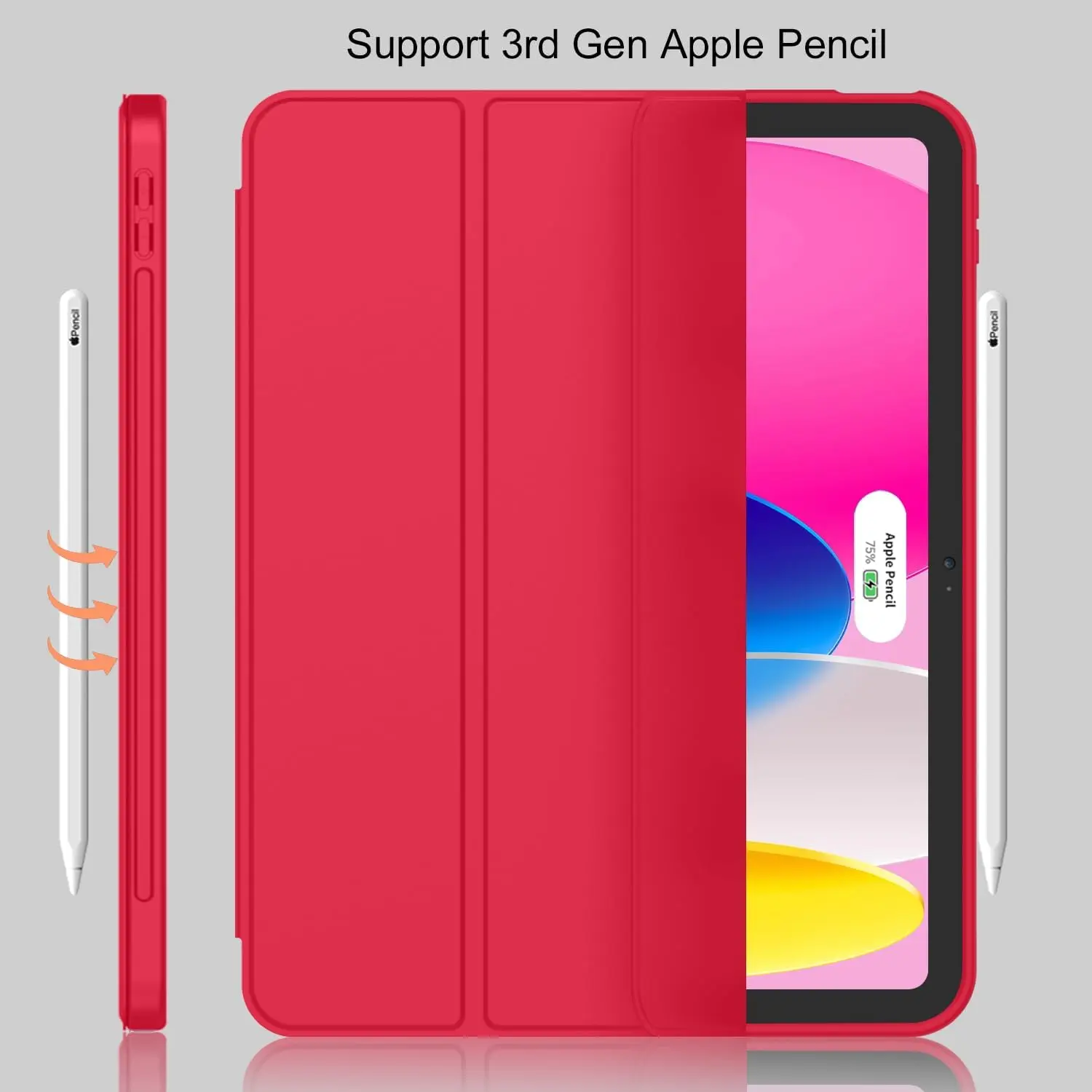 iMieet Case for New iPad 10.9 Inch (10th Gen, 2022) - Trifold Stand with Pencil Holder, Soft TPU Back, and Auto Wake/Sleep (Red)