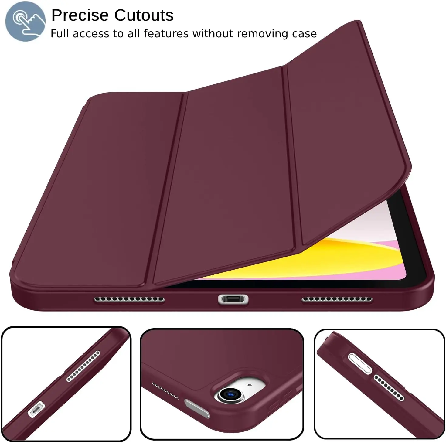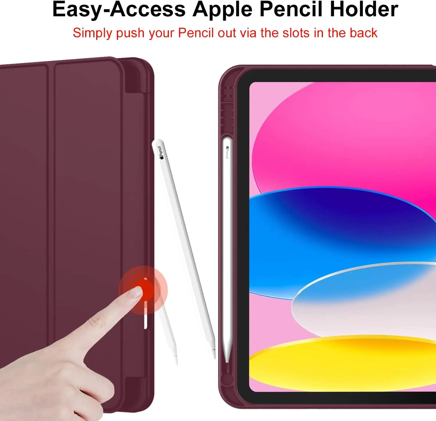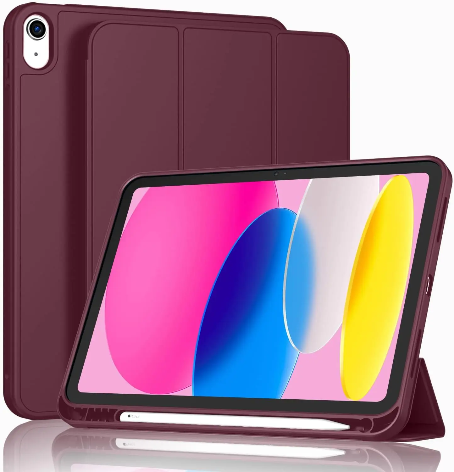 iMieet Case for New iPad 10.9 Inch (10th Gen, 2022) - Trifold Stand with Pencil Holder, Soft TPU Back, and Auto Wake/Sleep (Wine)