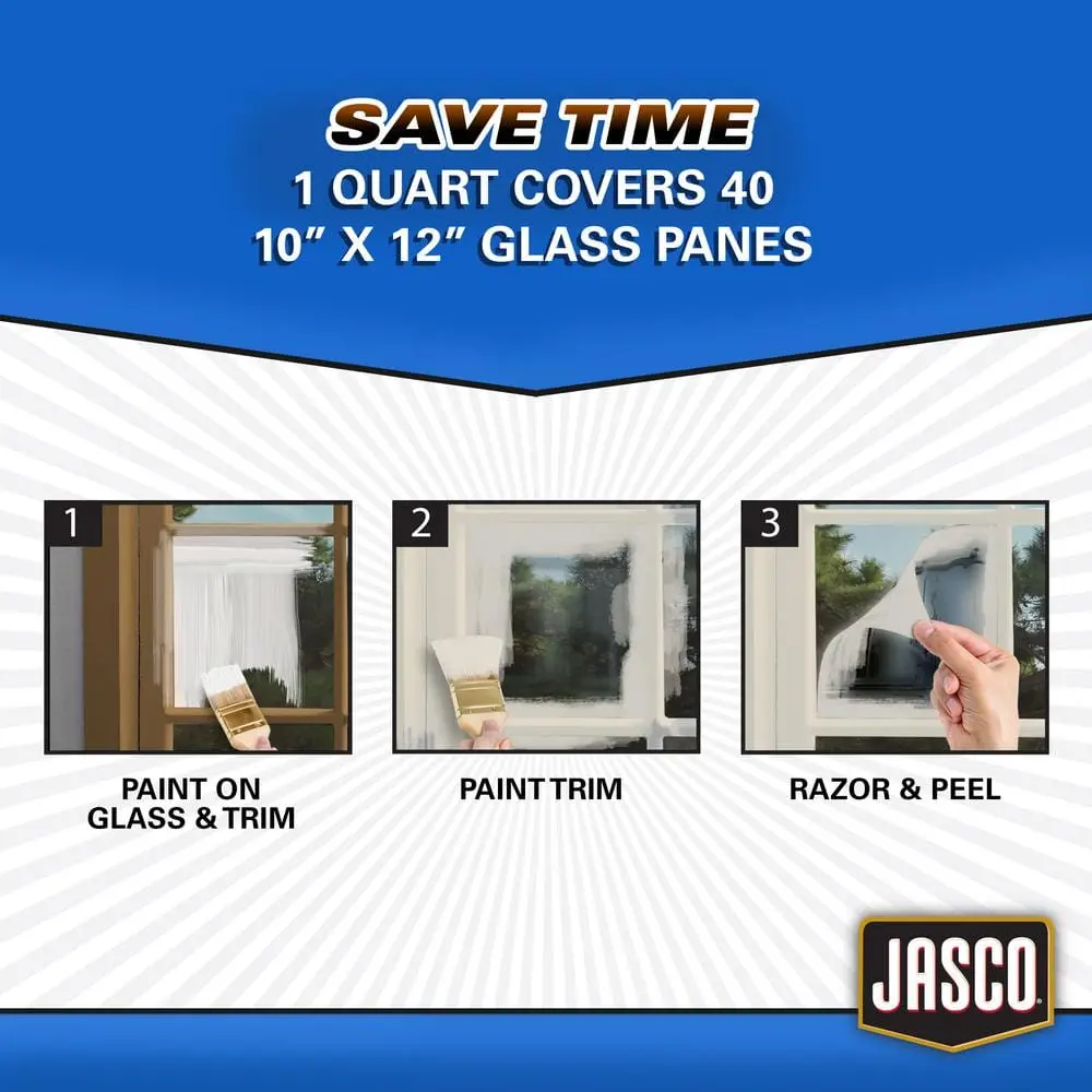 Jasco 1 Qt. Liquid Mask and Peel provides a reliable protective coating that creates a peelable layer to safeguard surfaces during painting. It is designed for versatile application on a variety of materials, including glass, wood, metal, and plastic. This product is easy to use, whether applied with a brush or spray, ensuring smooth and even coverage. It also offers quick drying for faster results, and once the paint job is complete, the mask is peelable, removing easily without leaving any damage to the surface.
