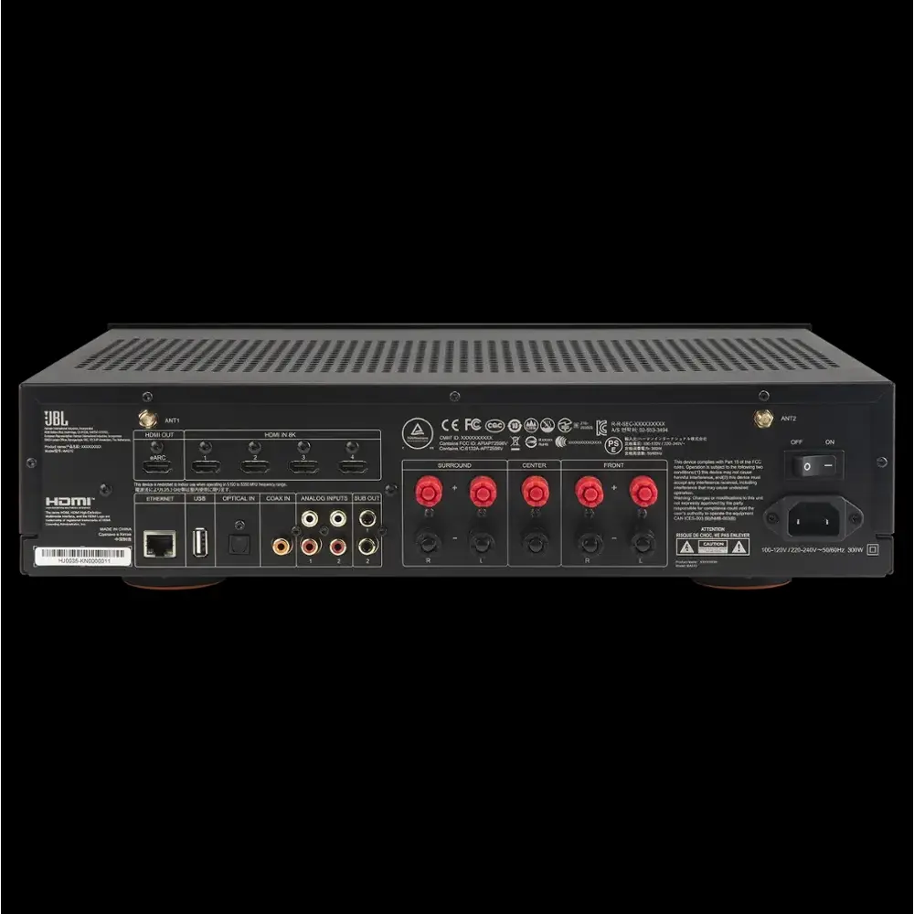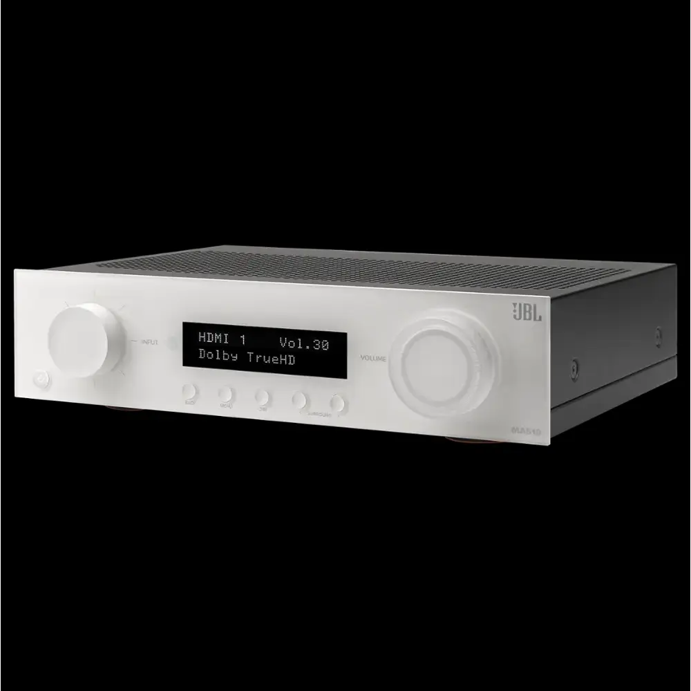 The JBL MA510 75W 5.2ch Bluetooth and WiFi Capable HDR 8K Ultra HD Compatible AV Receiver is designed to elevate your home entertainment experience with its 75W power output per channel, providing clear and dynamic sound. The 5.2-channel setup ensures a full surround sound experience, perfect for immersive audio. With Bluetooth and WiFi connectivity, you can easily stream audio wirelessly from your devices, while the HDR 8K Ultra HD compatibility supports ultra-high-definition video for stunning picture quality. The receiver also features advanced audio processing for enhanced sound clarity, all wrapped in a compact white design that seamlessly fits into any modern home setup. Additionally, it offers multiple inputs and outputs, allowing versatile connectivity with various devices
