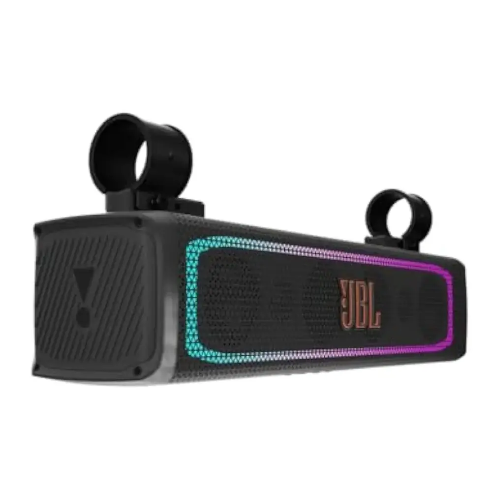 The JBL RallyBar is a compact yet powerful 21" Bluetooth universal outdoor vehicle soundbar, perfect for amplifying your adventures. Featuring a built-in 150W RMS Class-D amplifier, it delivers signature JBL Original Pro Sound with exceptional clarity and depth. Dynamic LED lights sync seamlessly with your music, adding vibrant energy to every ride. Designed to brave the elements, its IP66 rating ensures durability against dust and water jets. With versatile mounting options and effortless Bluetooth connectivity, the JBL RallyBar combines rugged performance and style, making it the ultimate companion for outdoor escapades.