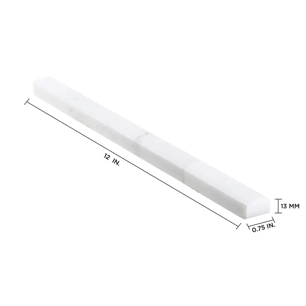 The Jeffrey Court Italian White Carrara .75 in. x 12 in. Honed Marble Wall Pencil Tile offers a refined, timeless appeal with its Italian White Carrara marble construction. The honed finish gives the tile a smooth, matte surface, perfect for creating an elegant, sophisticated look in any room. Measuring .75 in. x 12 in. per tile, it covers 1 linear foot, making it ideal for accentuating walls, backsplashes, or showers. Its luxurious design adds a touch of class to both residential and commercial spaces, while being durable and easy to maintain.