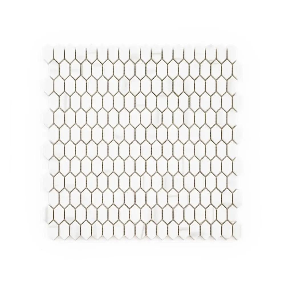 The Jeffrey Court Serenity Dolomite 11.125 in. x 11.875 in. Elongated Hex Matte White/Grey Glass Mosaic Wall/Floor Tile features a sleek matte glass finish in a stylish white and grey color palette. Its elongated hexagon pattern adds a modern and sophisticated touch to any space. Designed for versatile use, this tile is perfect for both walls and floors, enhancing residential and commercial interiors. With its water-resistant properties, it is ideal for moisture-prone areas such as bathrooms and kitchens. Plus, its stain-resistant surface ensures easy maintenance, making it a durable and elegant