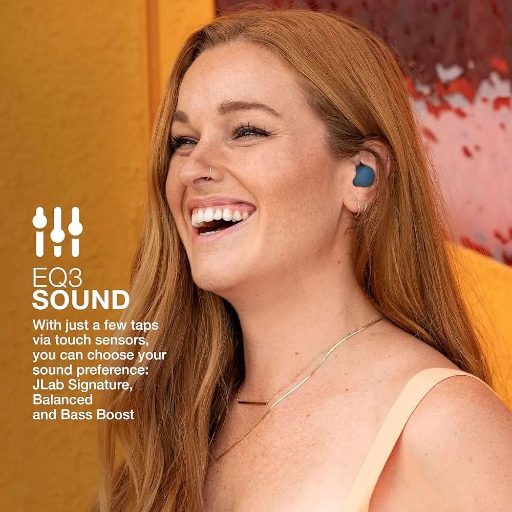 • Three EQ sound modes: JLab Signature, Balanced, and Bass Boost, controlled by touch sensors