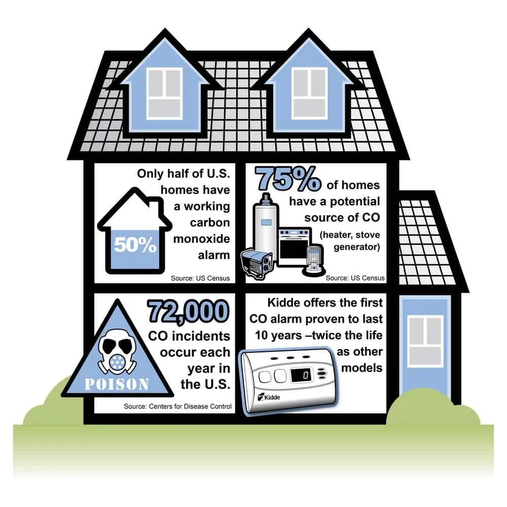 The Kidde 10-Year Worry-Free Carbon Monoxide Detector is designed for easy installation and reliable protection. It alerts your family to elevated carbon monoxide levels in your home. For optimal safety, carbon monoxide alarms should be installed outside each sleeping area and on every level of your home. Additional alarms are recommended 5–20 feet from CO sources such as furnaces, water heaters, or fireplaces. Powered by a 10-year sealed, non-replaceable lithium battery, this alarm requires no hardwiring or battery replacements. The digital display updates CO levels every 15 seconds for added peace of mind. Replace the unit after 10 years of use.