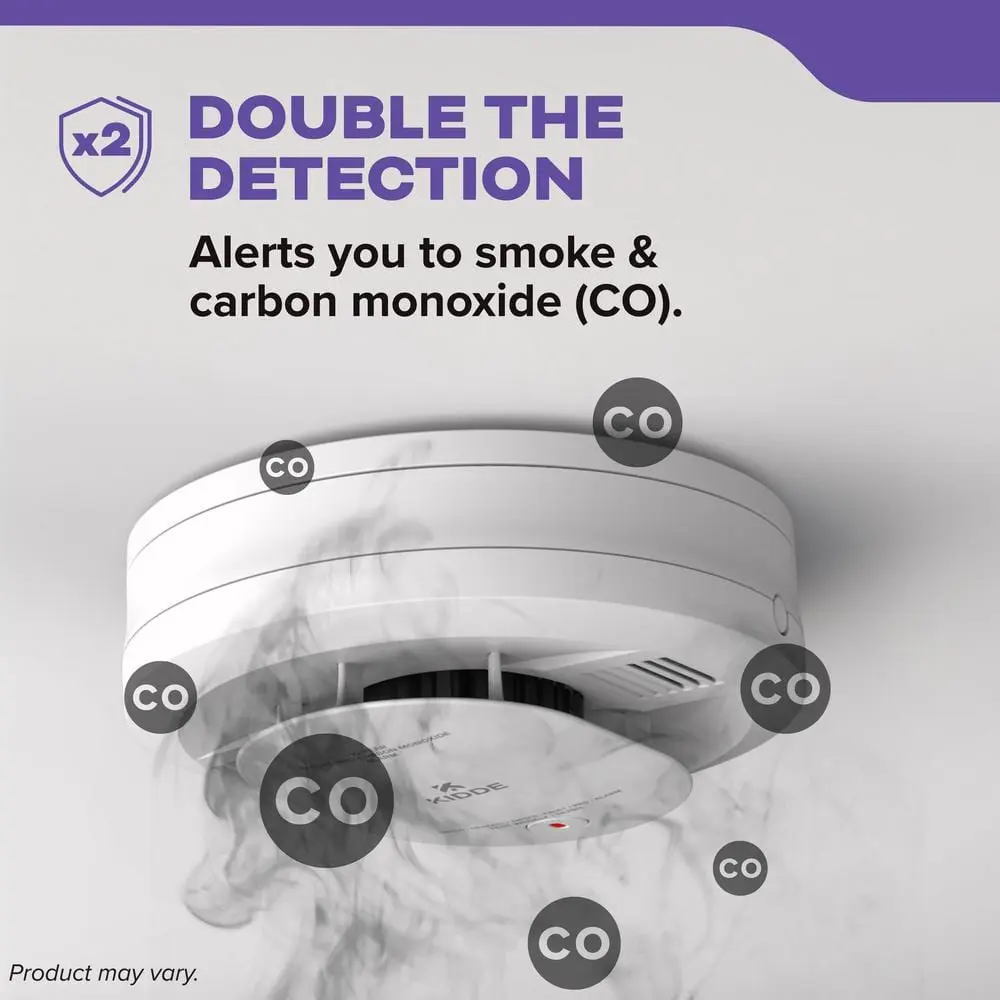 Elevate your home safety with the Kidde Smoke & Carbon Monoxide Detector, model 30CUDR. This advanced smoke and CO detector features enhanced sensing technology designed to reduce false alarms often triggered by cooking. It sends immediate alerts, providing your family with precious extra time to escape safely. The detector utilizes an electrochemical sensor to accurately detect carbon monoxide. This sleek 5-inch device is perfect for installation in living rooms, hallways, kitchens, and bedrooms. It is rigorously tested and meets the latest UL safety standards for reliability. The alarm is powered by 2 replaceable AA alkaline batteries (included), ensuring continuous operation even during power outages. Replace batteries every 6 months or when a low battery warning chirp sounds. Upon detecting smoke or CO, a loud 85-decibel alarm rings, accompanied by a flashing red LED light to alert you. It also features a test-hush button for checking battery status and silencing false alarms. With a simple twist-and-click installation and self-testing features, this alarm is user-friendly. Additionally, the alarm includes an end-of-life notification to remind you when it needs to be replaced after 10 years. This device meets the UL 217 9th Edition, UL 2034 4th Edition, and FCC standards.