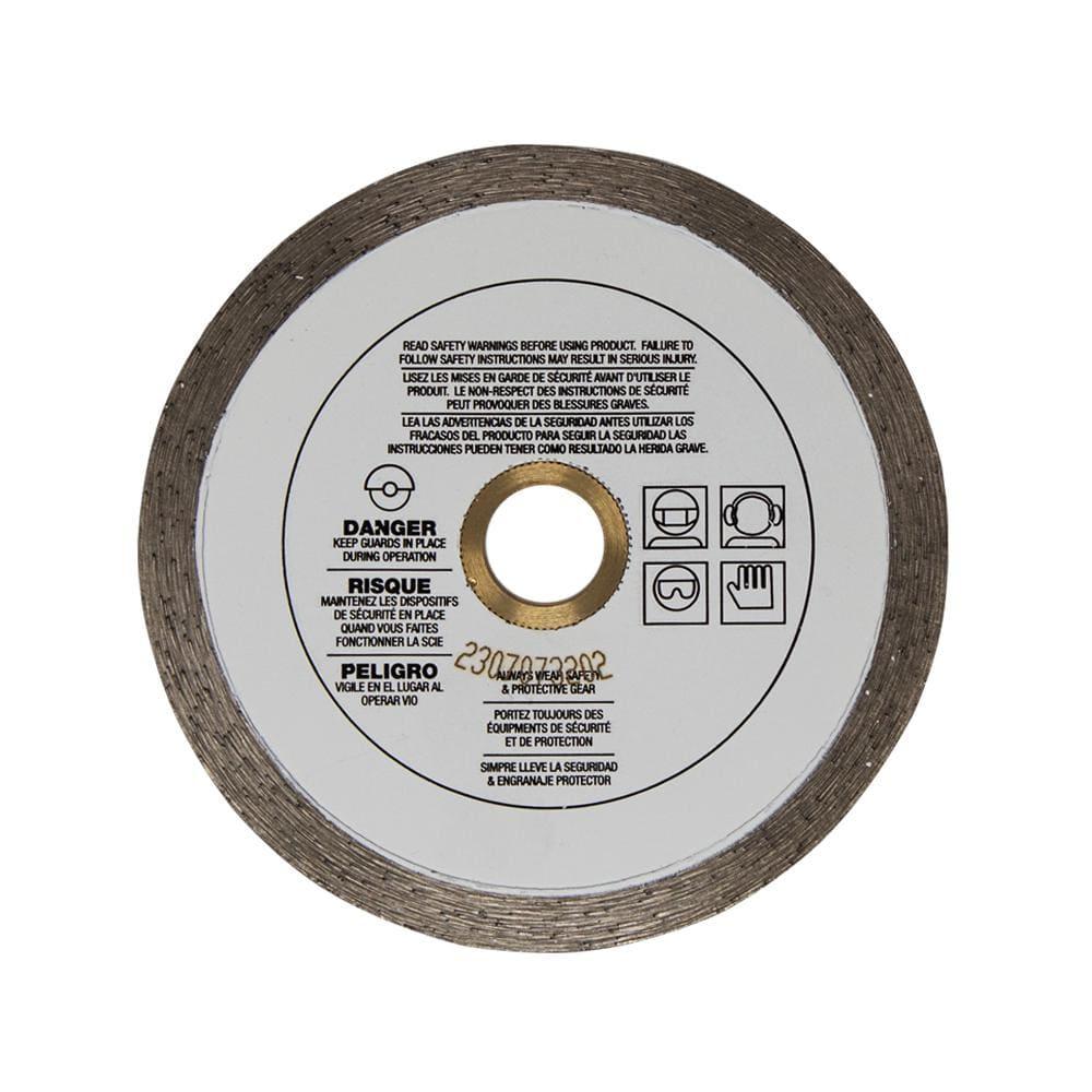 The KING DIAMOND 4 in. Continuous Rim Diamond Blade is ideal for DIYers needing durability and consistent cuts. Perfect for ceramic, porcelain, and marble tiles, it fits 4 in. wet tile saws with a 7/8 in. arbor, and includes 5/8 in. and 20mm adapters.