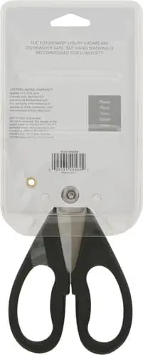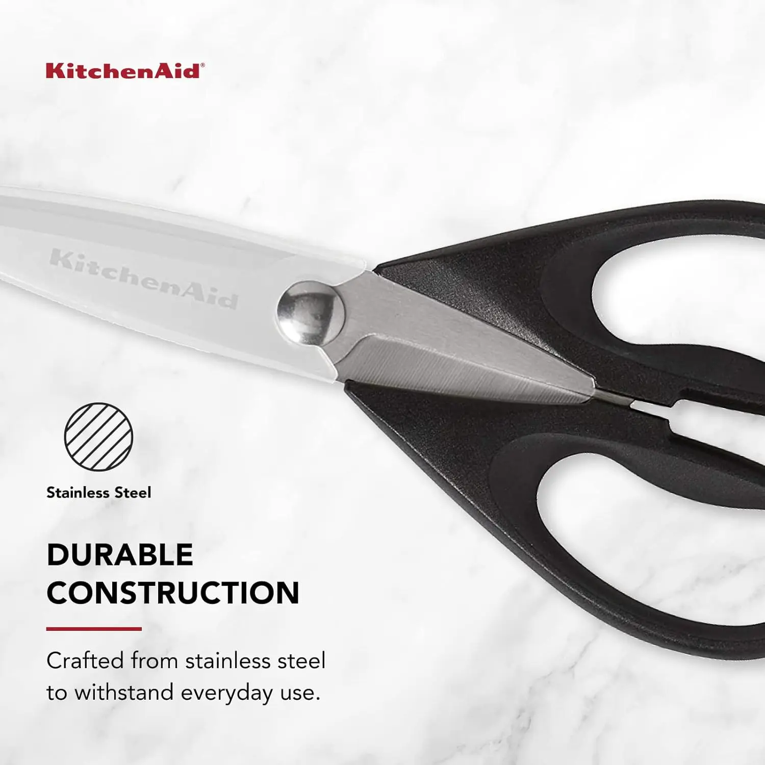 These all-purpose shears from KitchenAid are an essential addition to your kitchen tools, perfect for various tasks at home, such as slicing poultry, pizza, and even clipping coupons. The blades feature micro-serrations for enhanced cutting performance. Made from durable stainless steel, these kitchen scissors are designed for daily use, and the soft-grip handles ensure comfort and control. They come with a protective blade guard for safe storage. While dishwasher safe, hand washing is recommended.