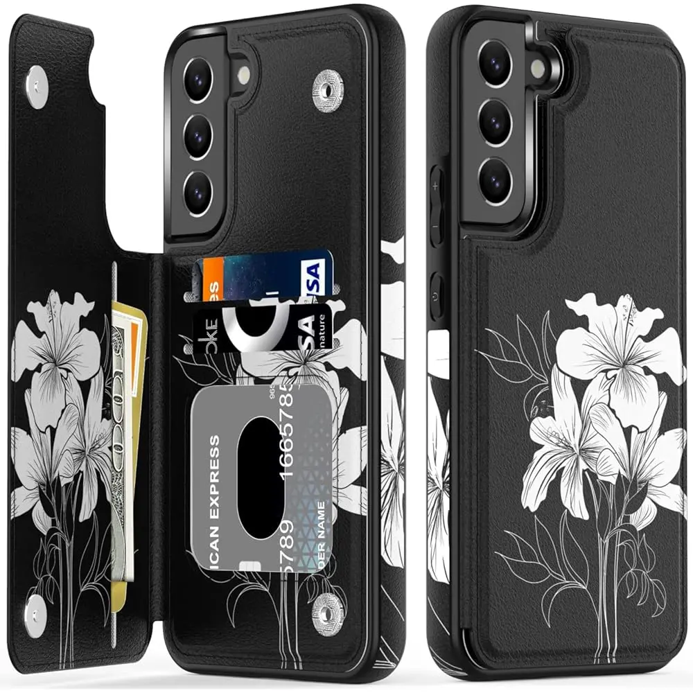 The LETO Galaxy S22 case is a stylish and functional accessory designed to enhance and protect your Samsung Galaxy S22. Crafted from premium luxury leather, this flip folio wallet case offers a sleek black finish that complements any outfit or occasion. It features multiple card slots for storing your essentials, such as credit cards or IDs, making it an excellent choice for women and girls who value convenience and organization.
