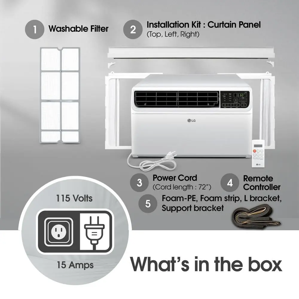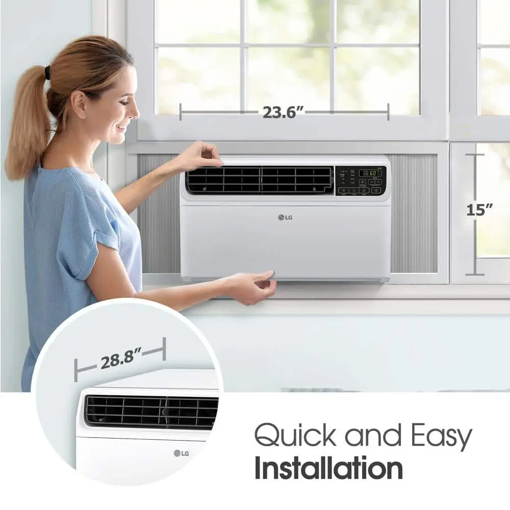 The LG Dual Inverter air conditioner is a leader in cooling technology, offering ultra-quiet performance at just 44 dB in sleep mode—about as quiet as a library. With DUAL Inverter technology, this unit operates efficiently, providing up to 35% energy savings. Control your cooling from anywhere with LG ThinQ technology using your smartphone, or use voice commands through Alexa or Google Assistant. The unit offers 4 cooling and fan speeds, plus a 24-hour timer to create a personalized cooling schedule. With 4-way air deflection, it directs airflow where it’s needed most, whether for cooling, dehumidifying, or circulating air. The auto restart feature ensures the unit automatically resumes operation after a power outage. Other features include an LCD remote, an easy window installation kit, a removable washable filter, and a filter check alert.
