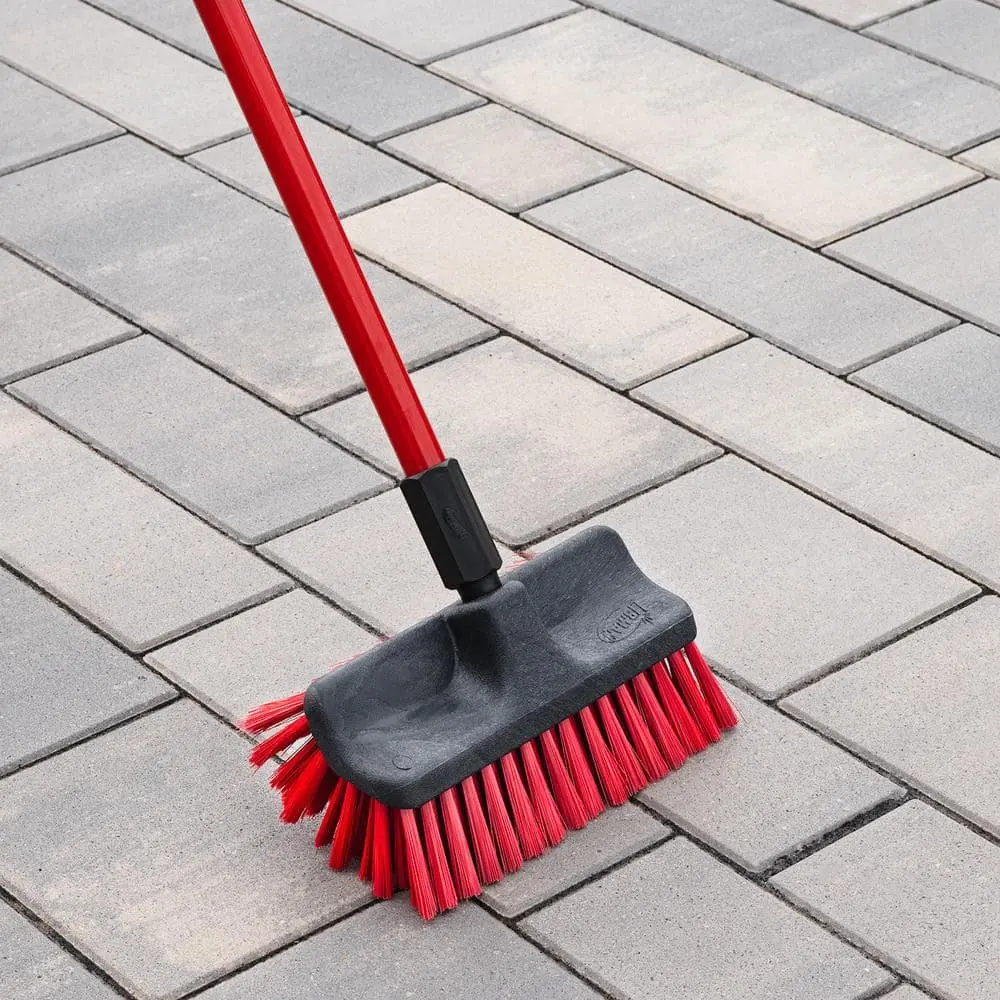 The Libman scrub brush is perfect for cleaning floors, walls, and especially tile baseboards in kitchens and restaurants. Its bi-level, dual-surface brush head makes it easy to scrub both the floor and the baseboard where the floor meets the wall. This versatile scrub brush can also be used as a standard floor scrub brush, as well as for cleaning outdoor patio pavers, pools, or decks. The long steel handle eliminates the need to bend over, making it ideal for scrubbing floors and grout lines with ease.