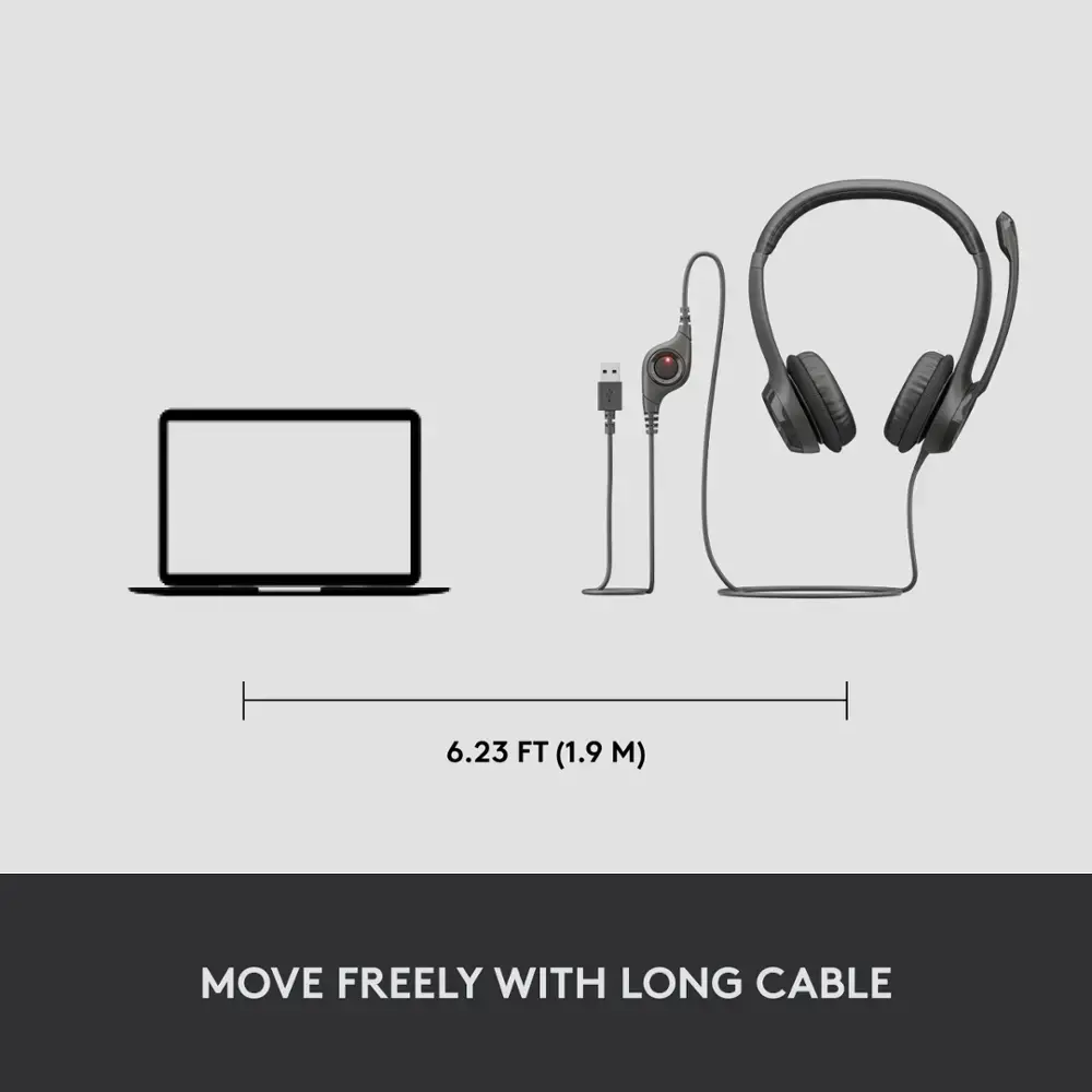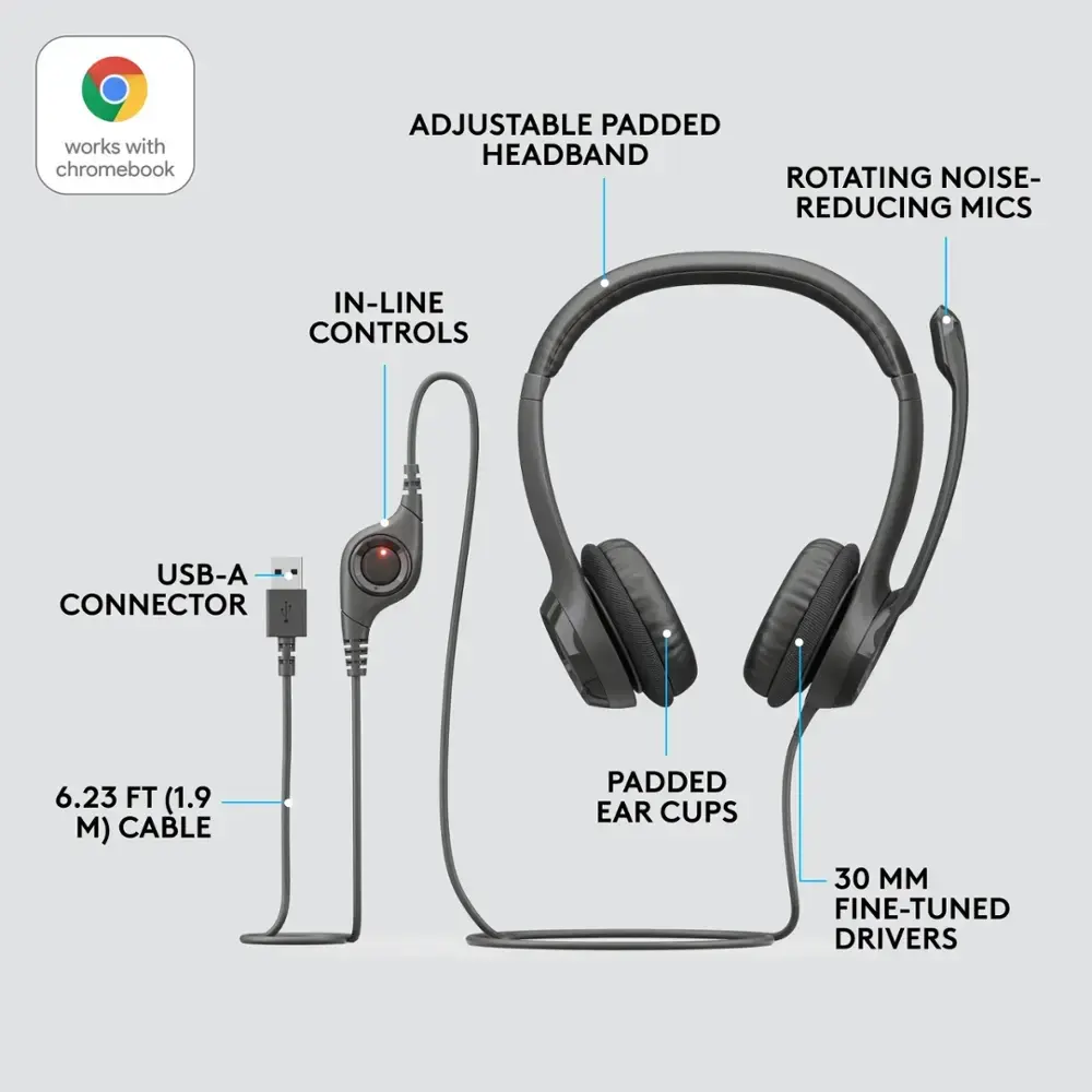 The Logitech H390 USB Headset delivers crystal-clear call quality with a plug-and-play USB connection and a noise-canceling microphone. Whether you're in a meeting, listening to music, or making calls, the fine-tuned digital audio drivers ensure an immersive experience. Featuring in-line controls for volume and mute, a rotating boom mic, and padded comfort for all-day wear, this headset is designed for productivity and convenience.